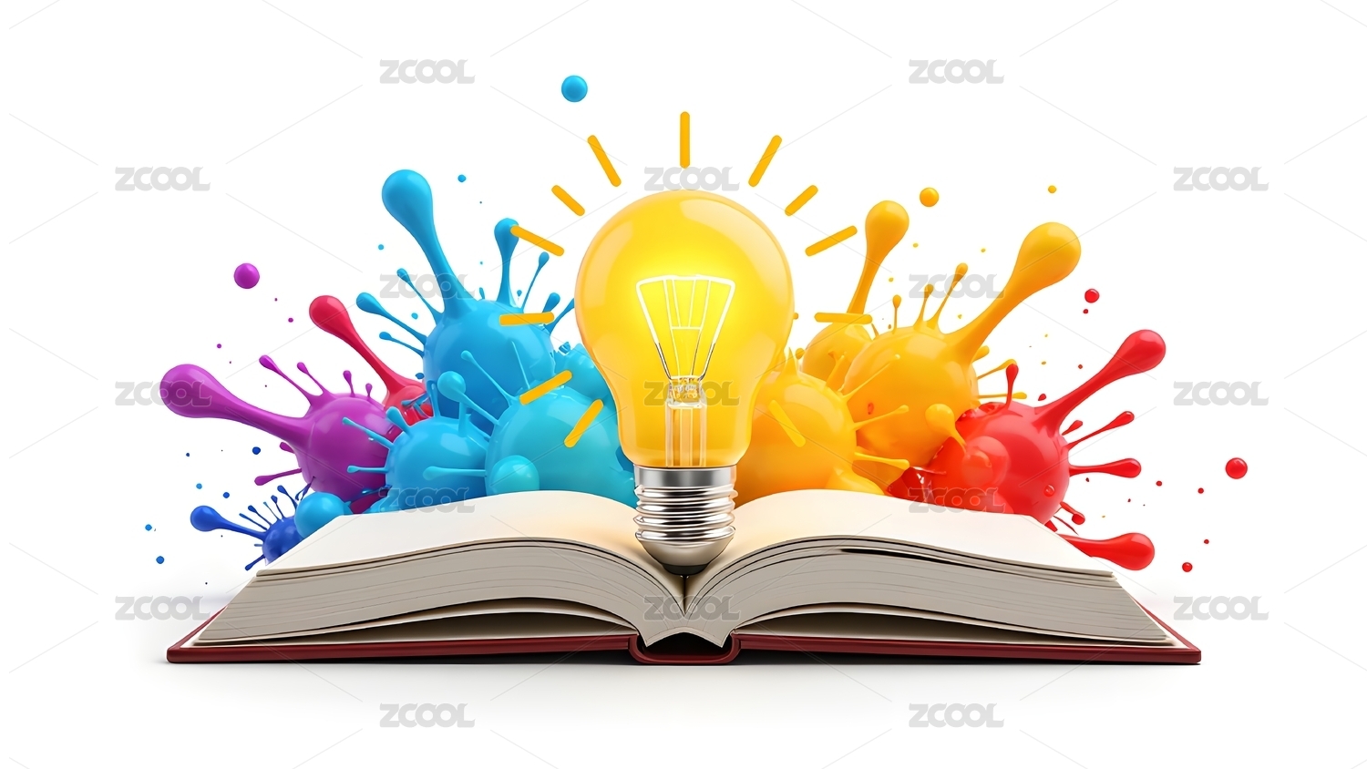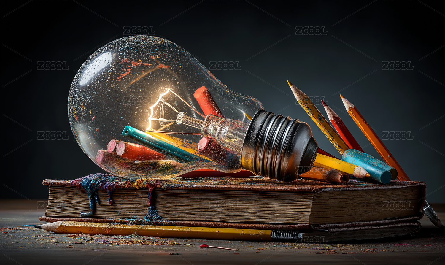 书本,灯泡,彩铅,创意,教育,插画,素材,灵感,艺术,设计