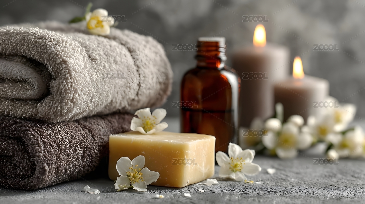 spa氛围舒缓疗愈洁白毛巾