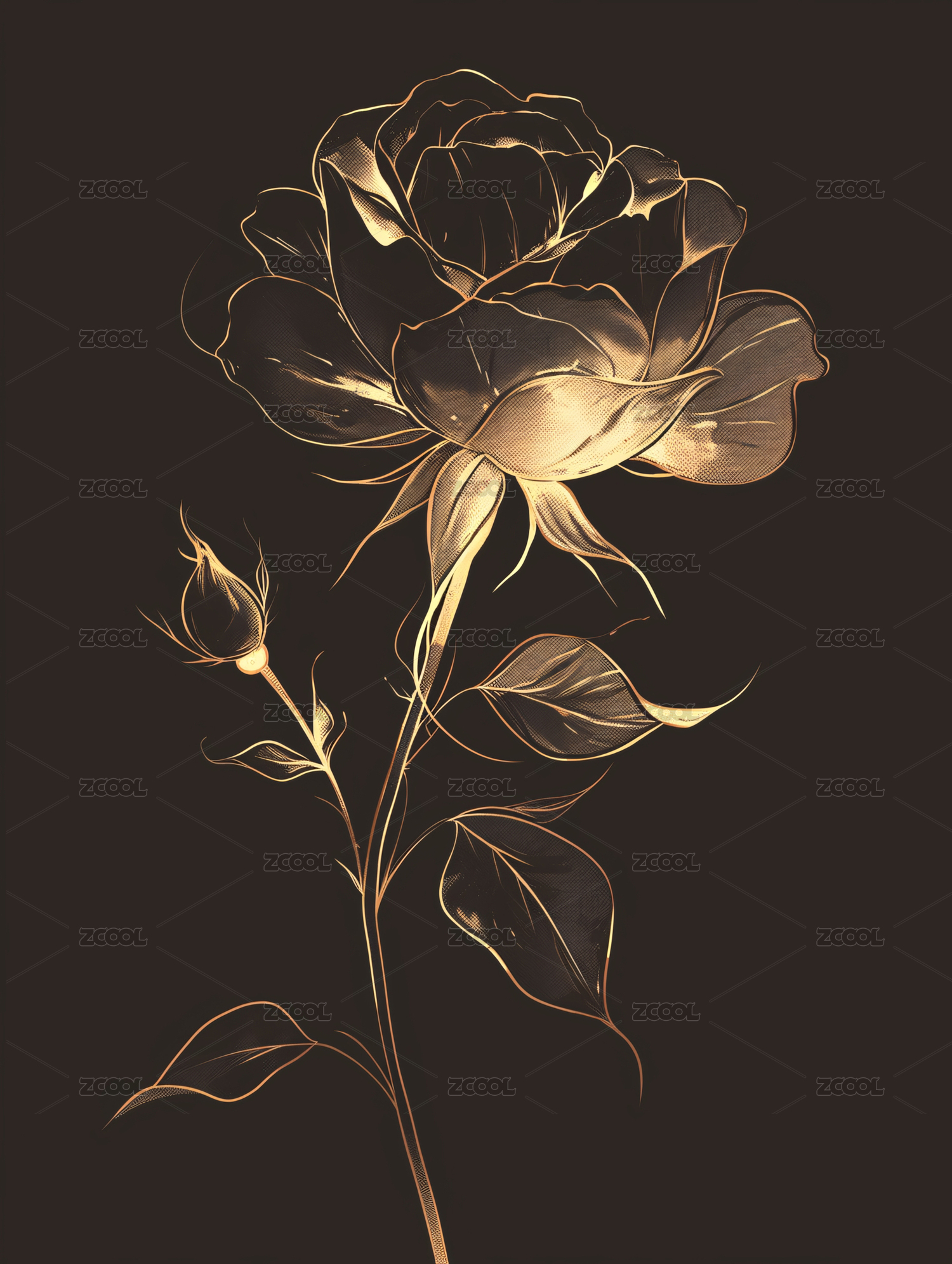 金色玫瑰花卉艺术图