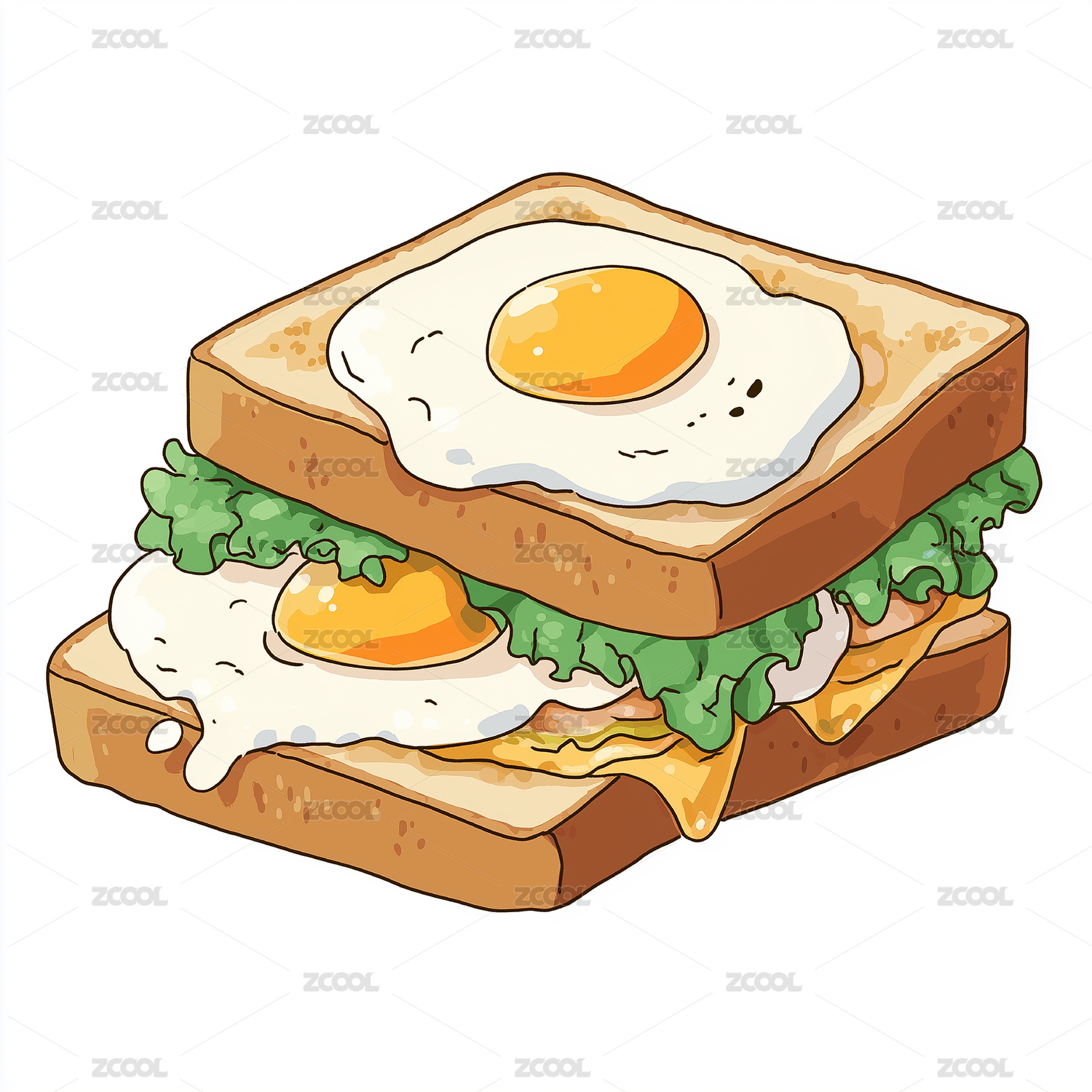 煎蛋,吐司,美食,插画,设计,素材,早餐,美味,可爱,艺术