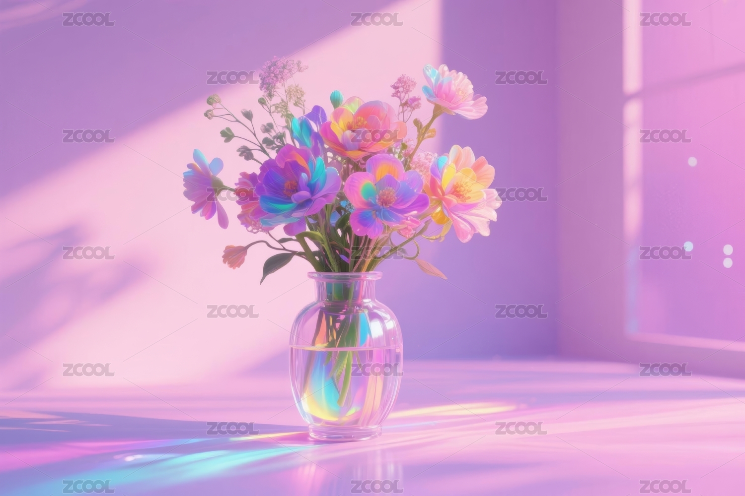 幻彩花瓶中的温柔花束