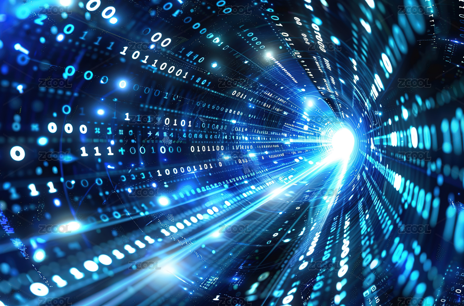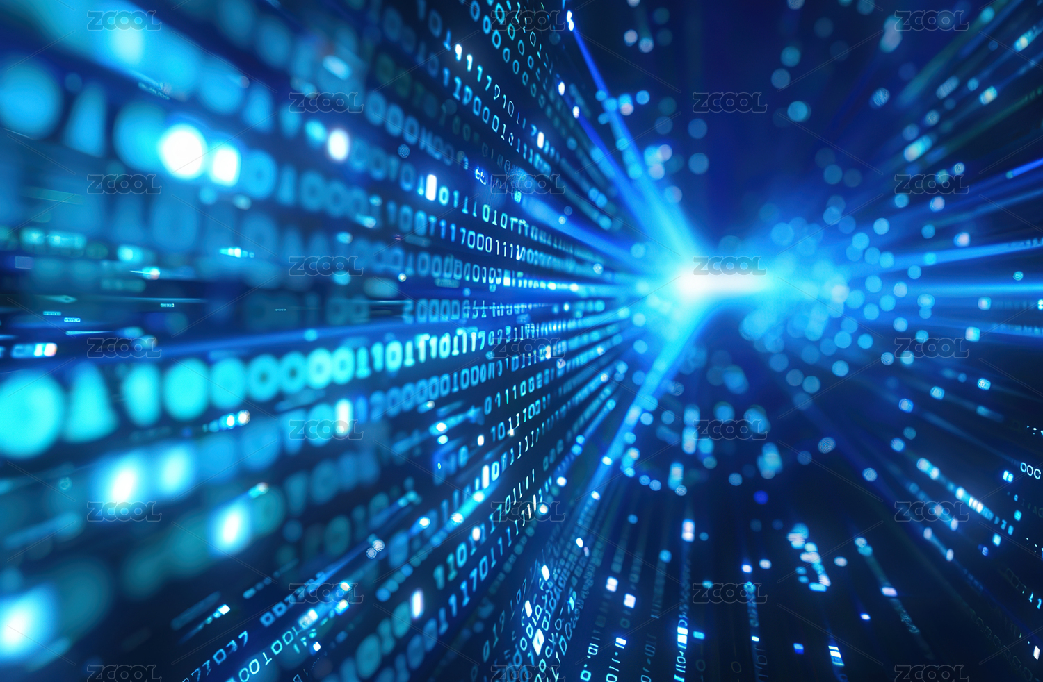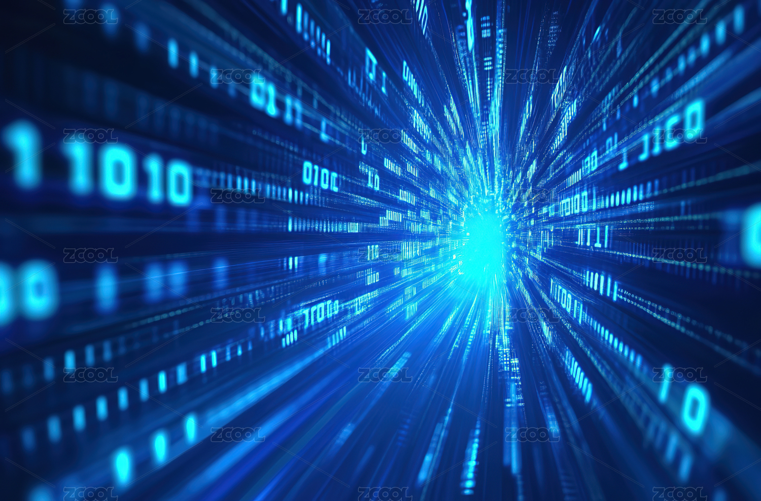 蓝色二进制数据流向中心