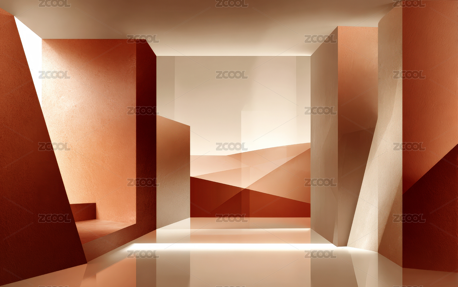 橙色现代几何建筑空间平台3D渲染抽象背景
