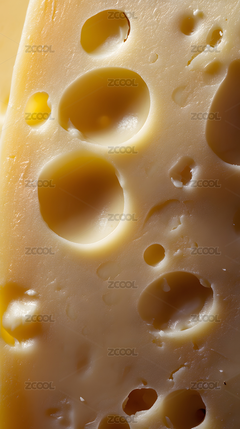奶酪特写镜头呈现孔洞纹理