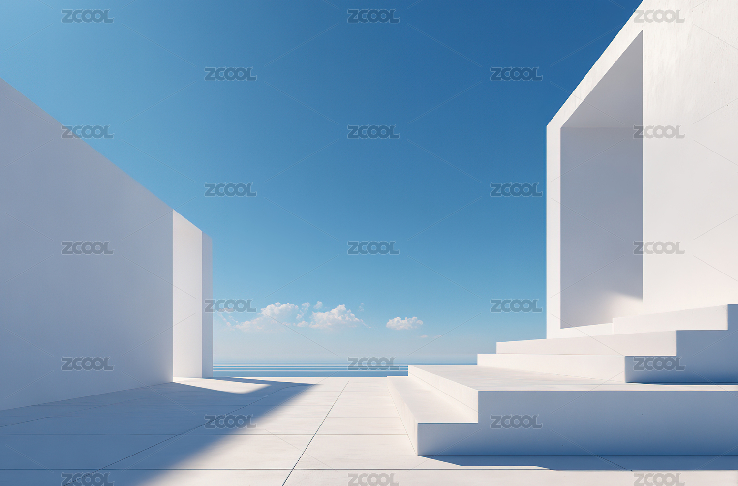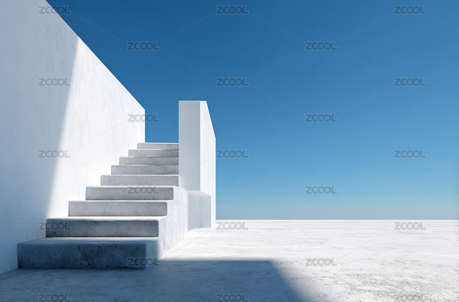 白色阶梯与蓝天的简洁建筑