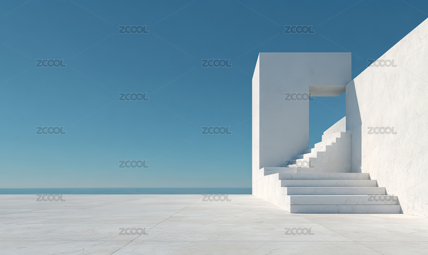 白色建筑与阶梯的极简空间