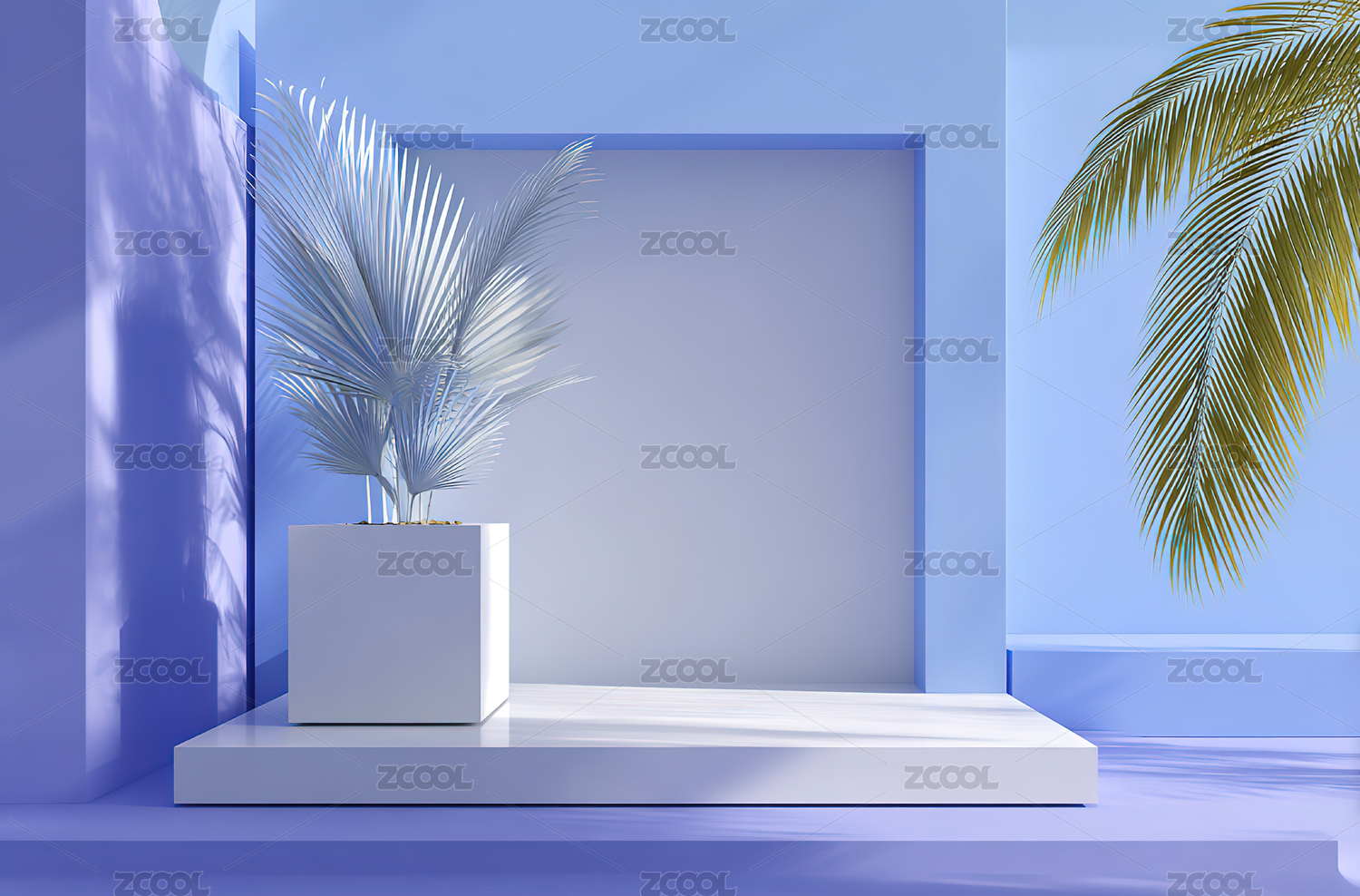 蓝色调植物展示场景