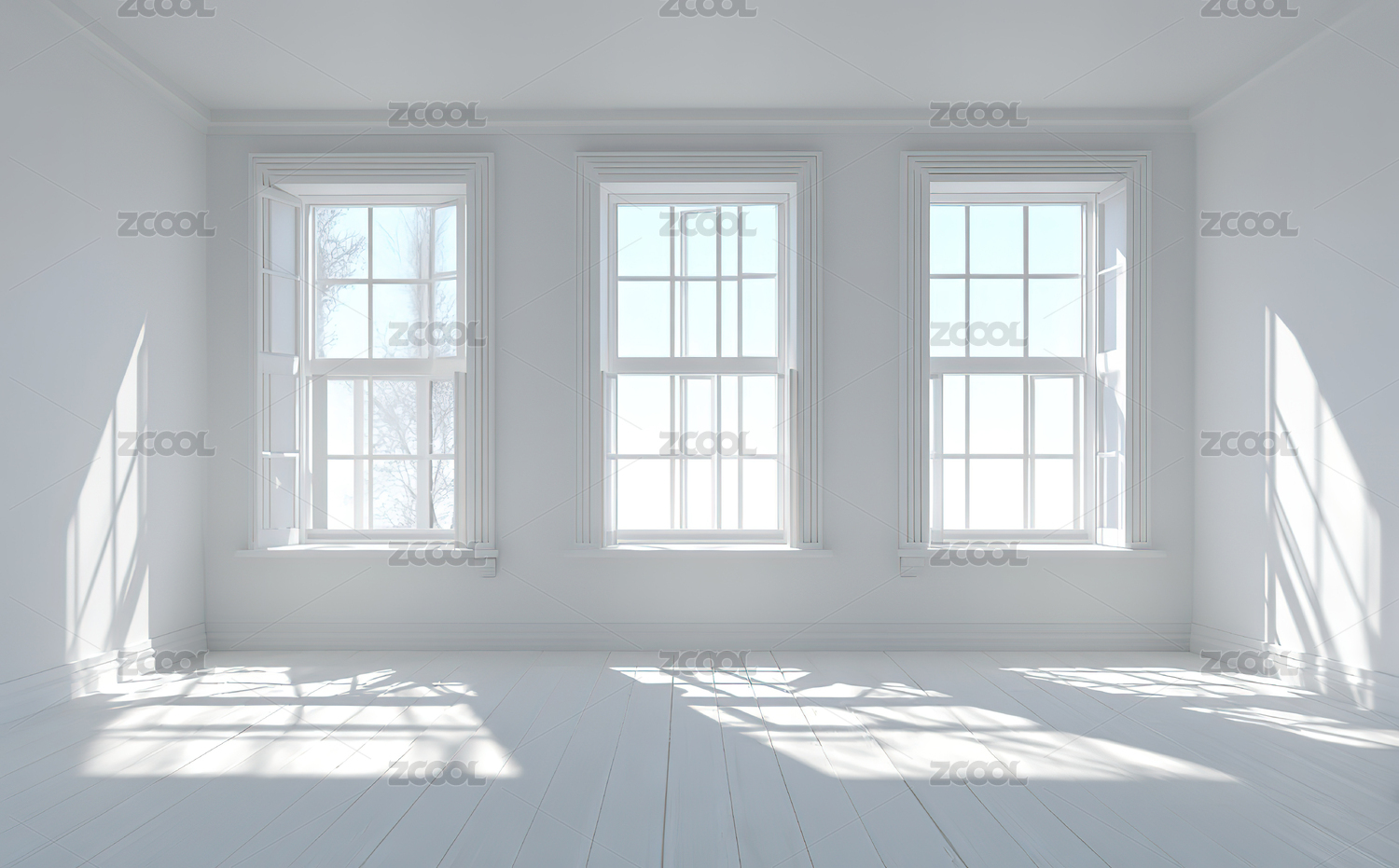 明亮空旷的白色房间