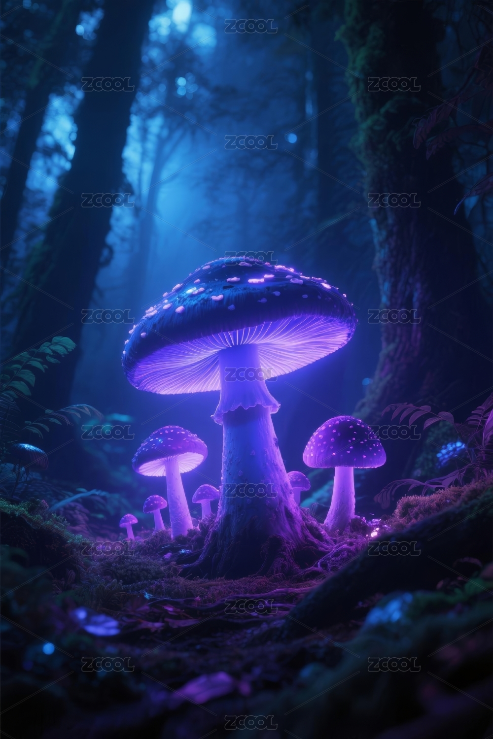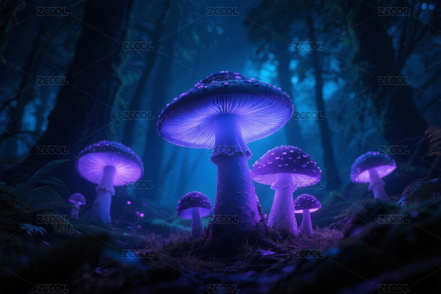 主视觉,商业,壁纸,场景,背景,紫色,蘑菇,奇幻,森林,发光