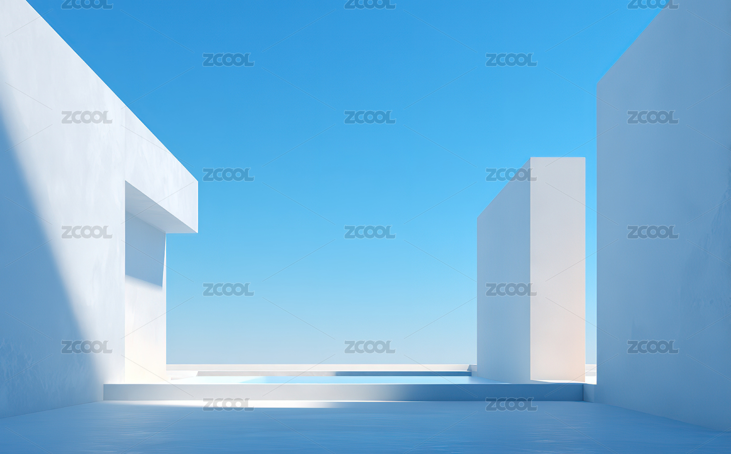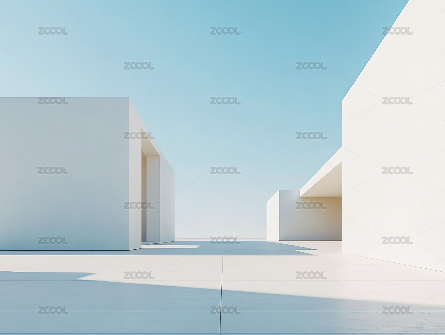 白色建筑与蓝天的几何空间