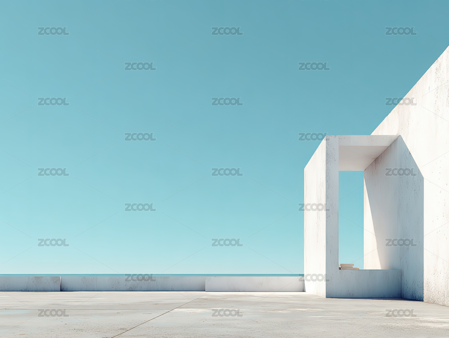 现代建筑与海天一色的宁静场景