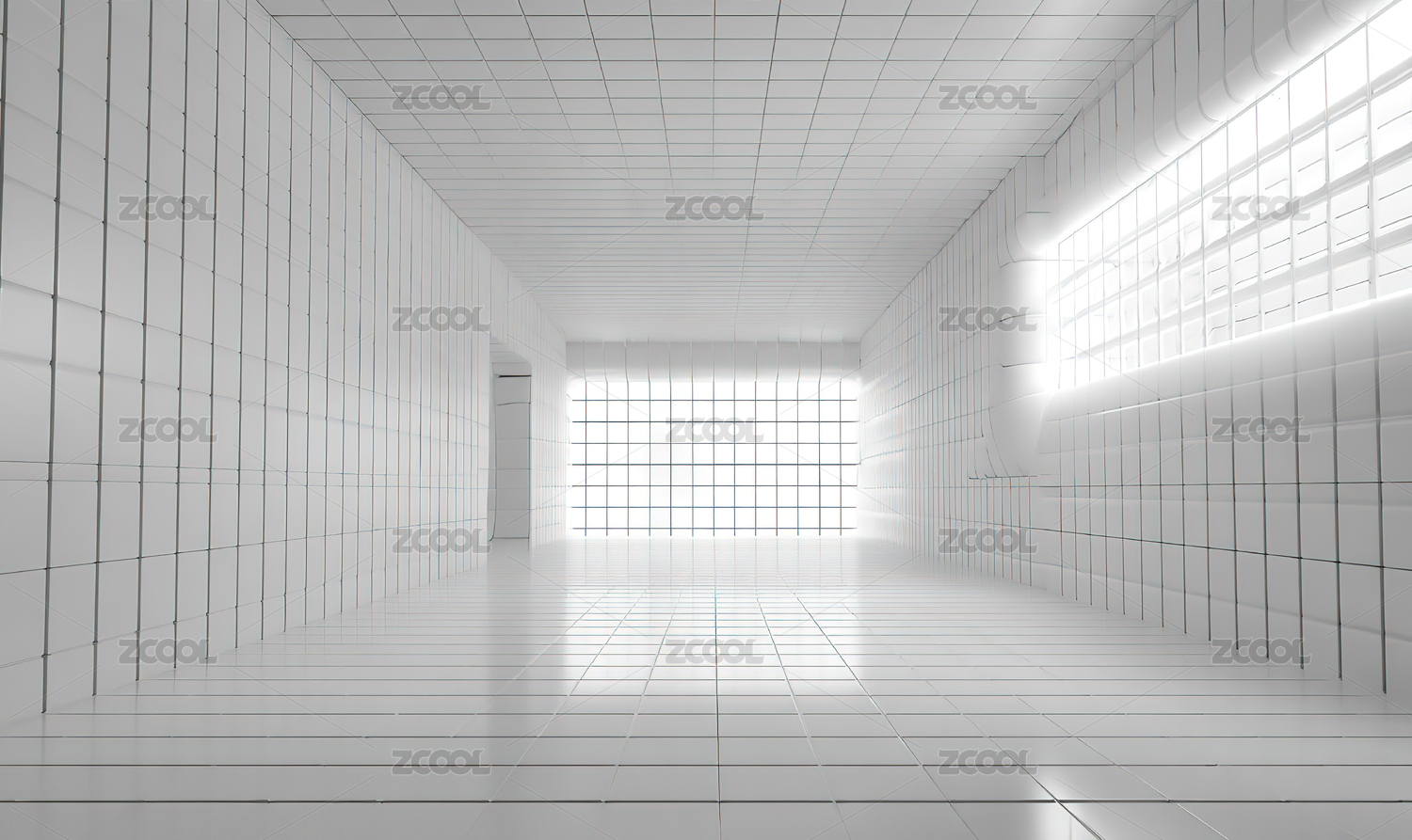 明亮空旷的白色瓷砖走廊