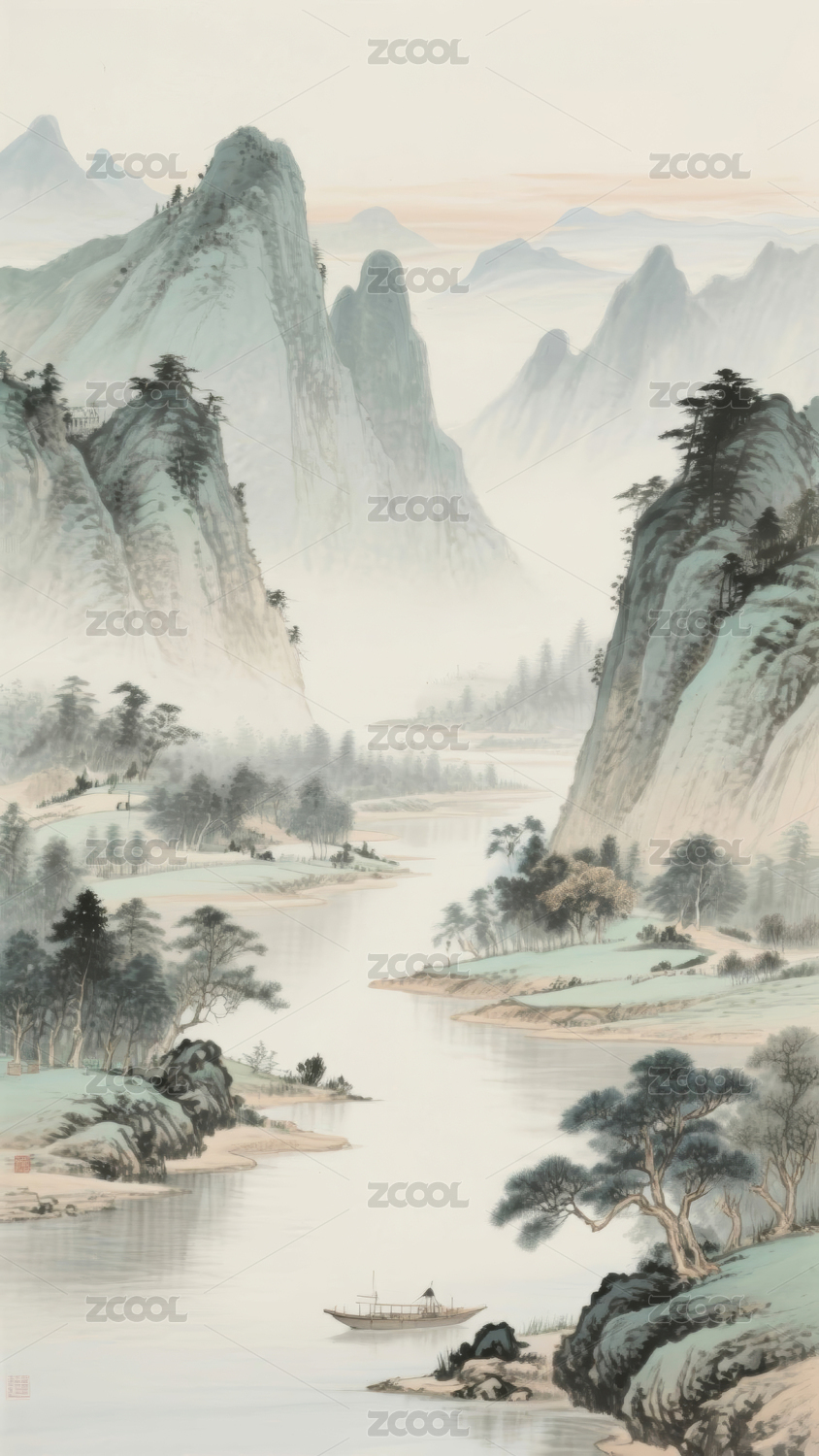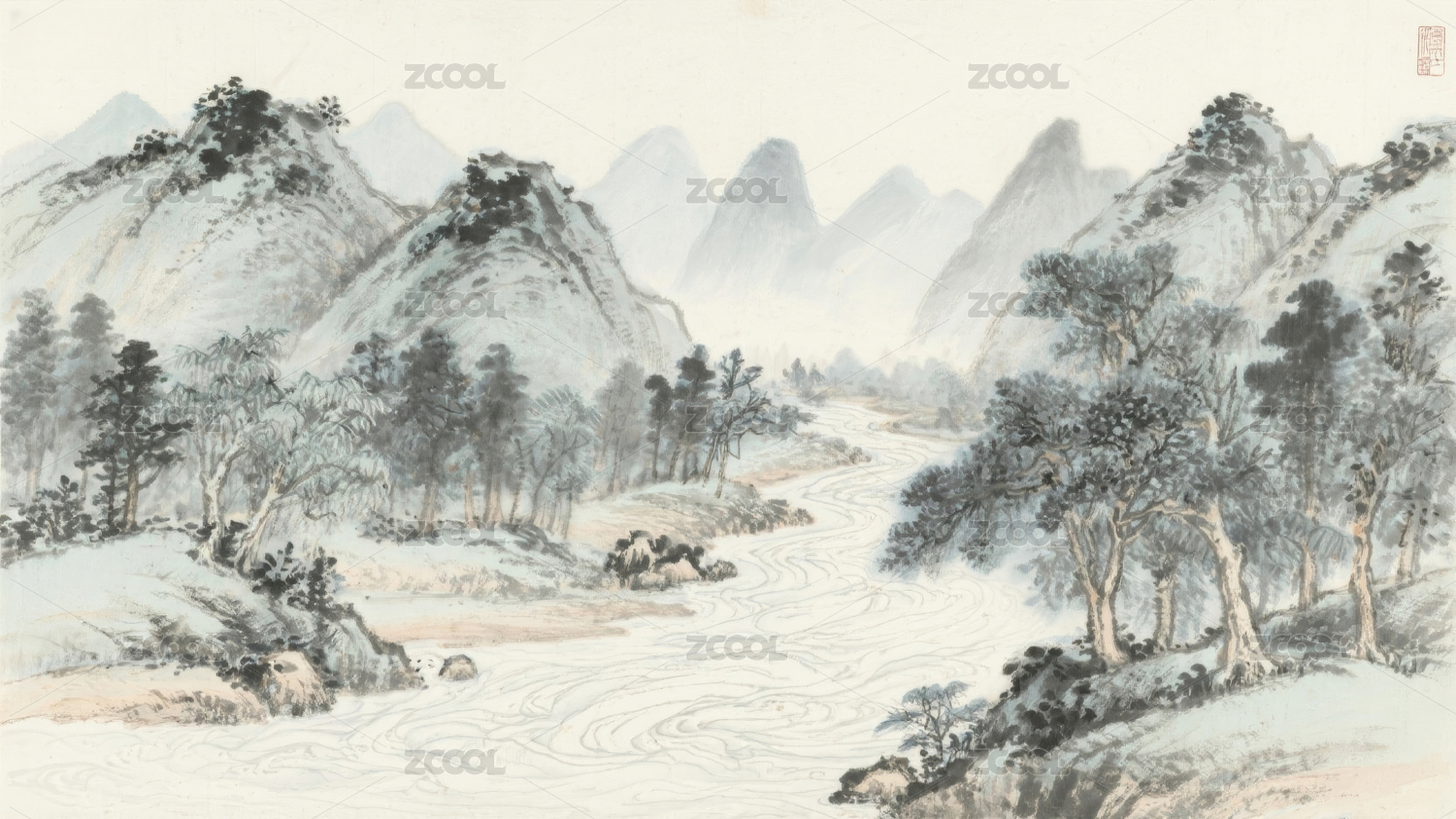 主视觉,商业,壁纸,自然,场景,背景,山水,画卷,古风,山脉