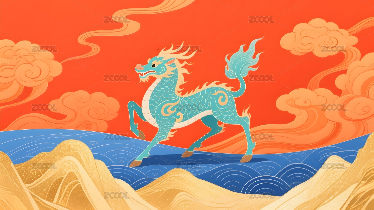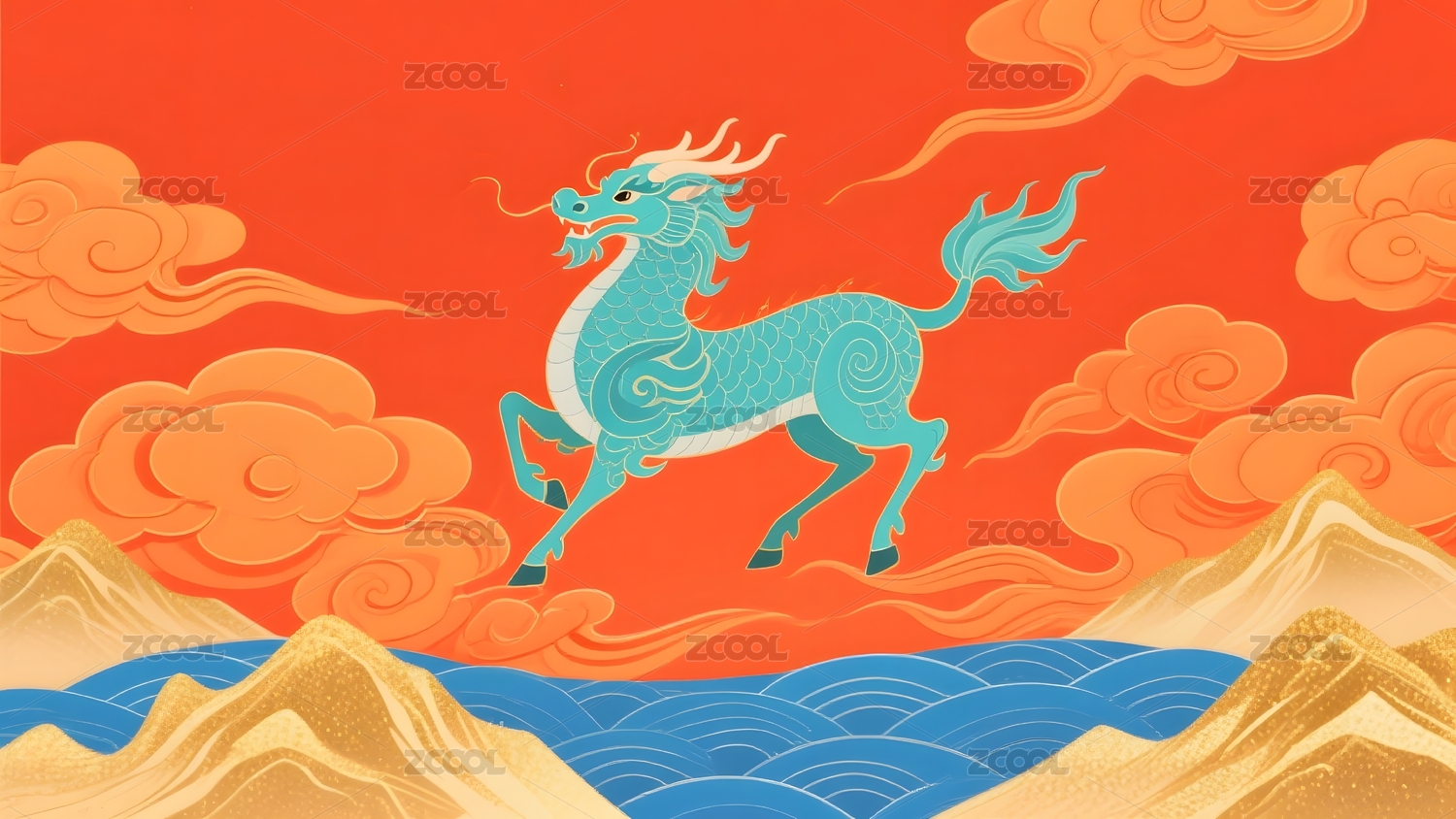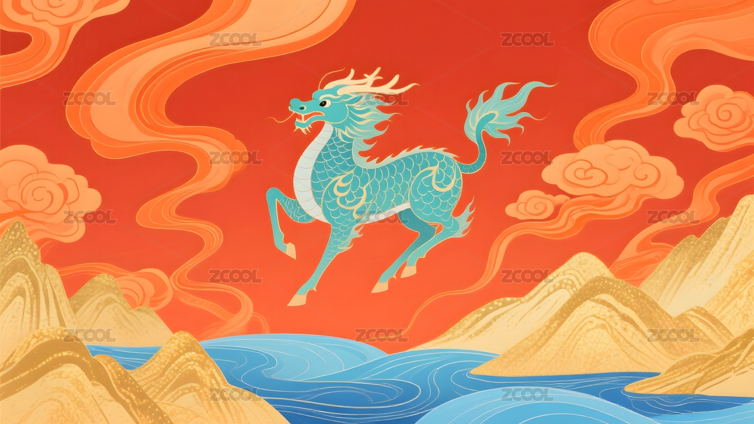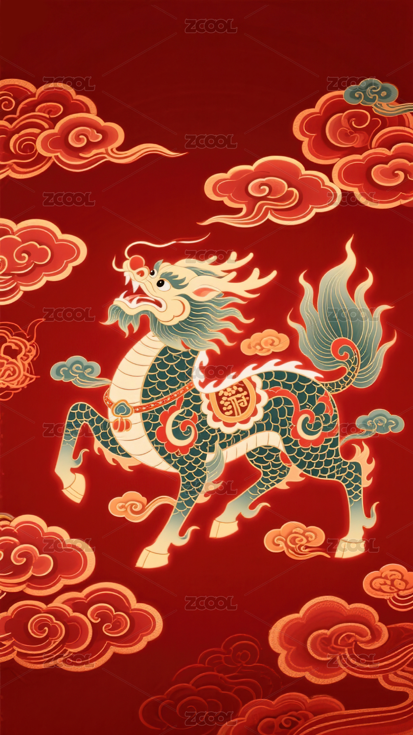 主视觉,商业,壁纸,装饰,场景,纹样,元素,麒麟,祥瑞,中式