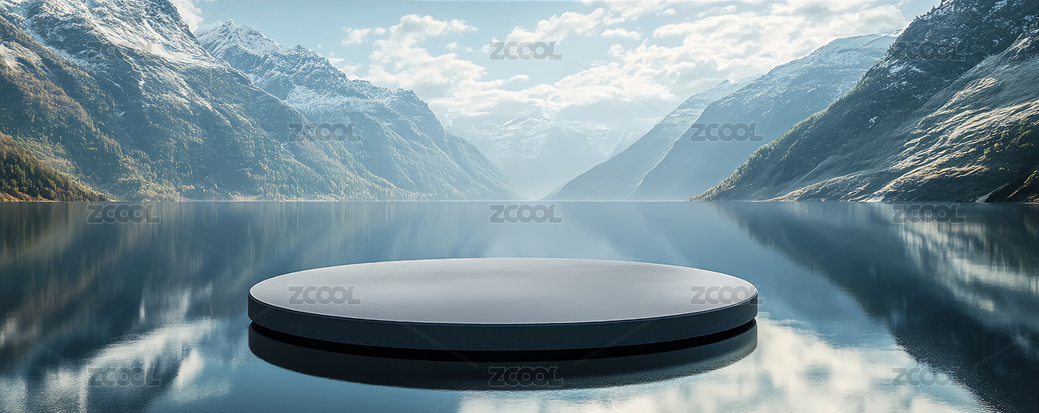 户外,雪山,三维,场景,白昼,蓝天,白云,舞台,圆形,3D