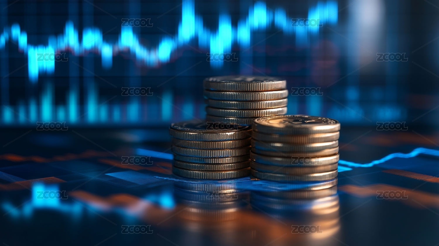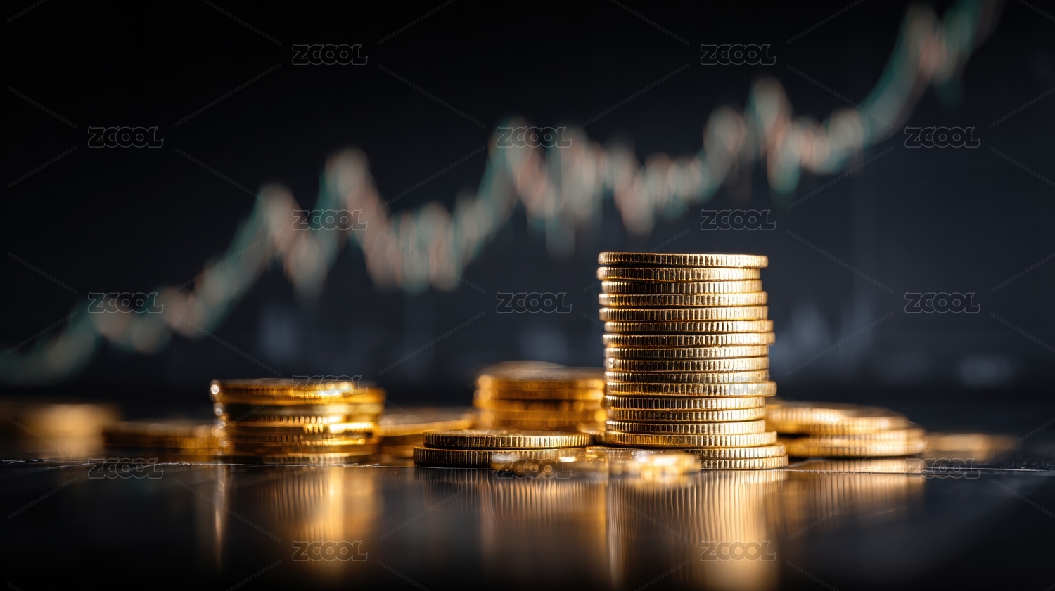 金币堆叠与股市趋势图