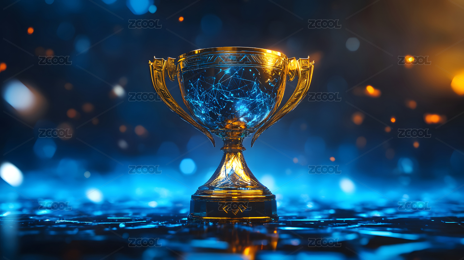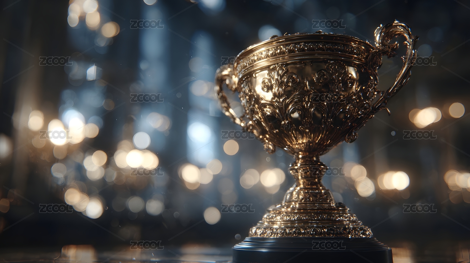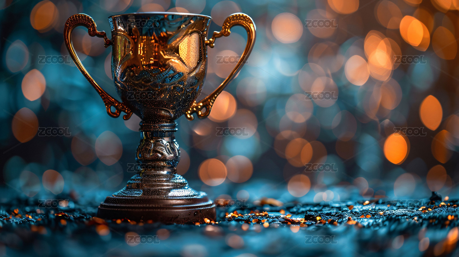 金色奖杯与光斑背景