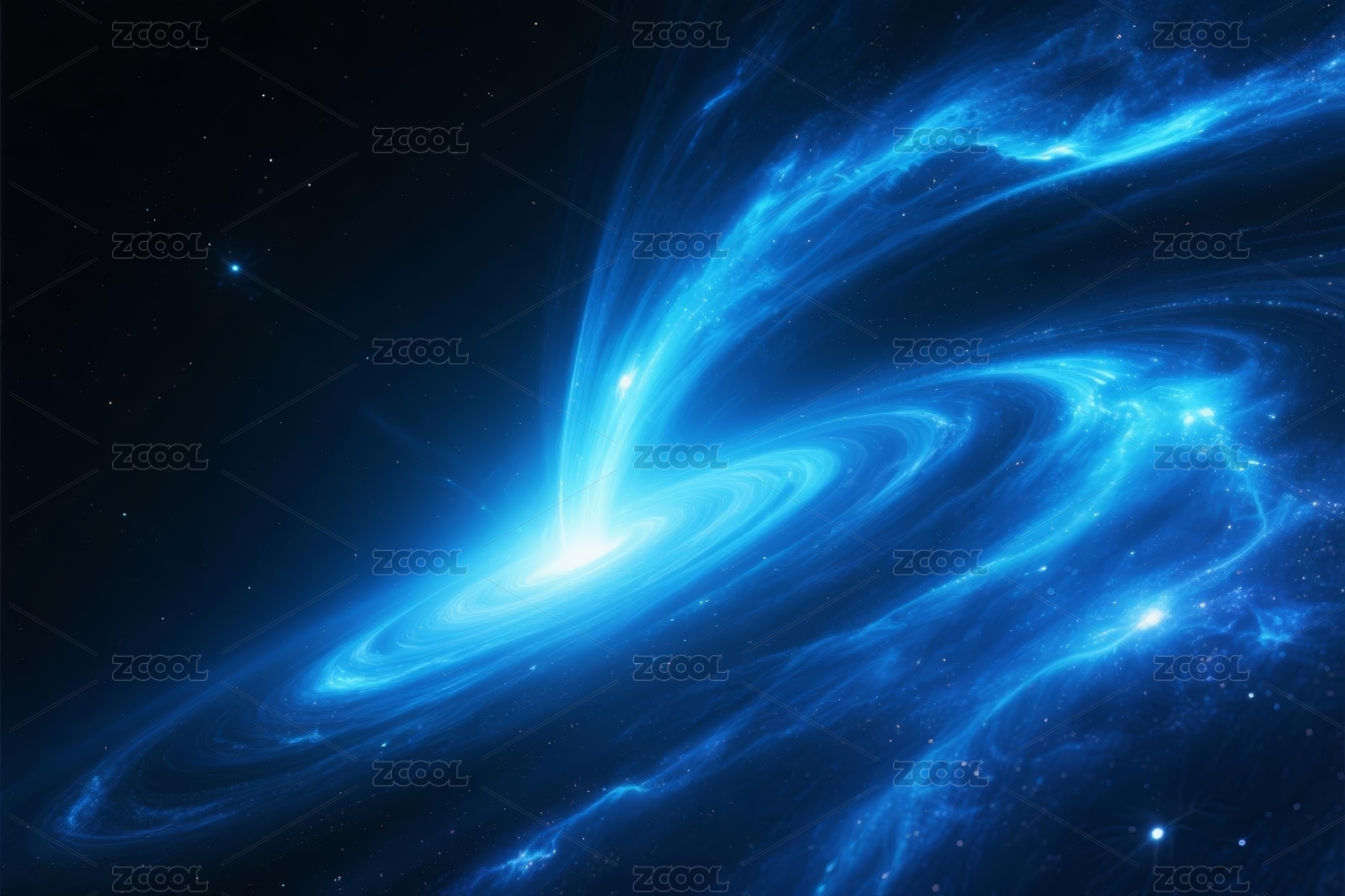 蔚蓝色的星空中有横行和黑洞的螺旋星系旋涡