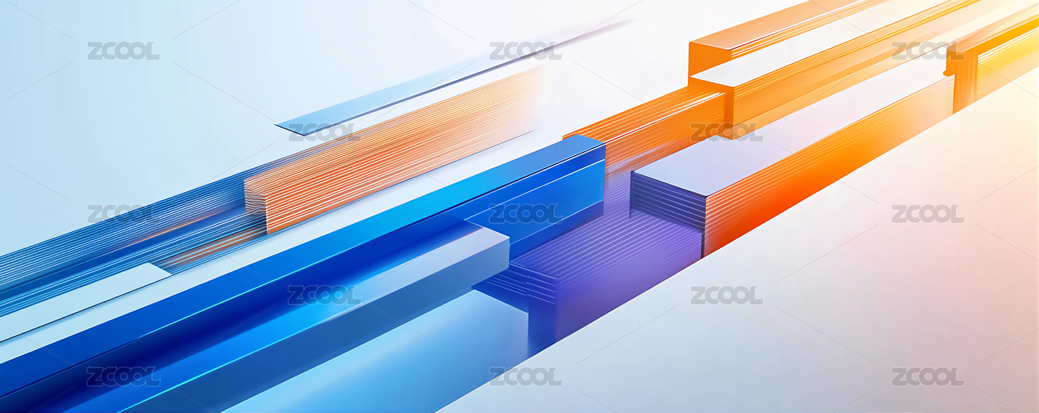 抽象,矩形,几何体,图案,蓝橙色,渐变,光影,三维,人工智能,大数据