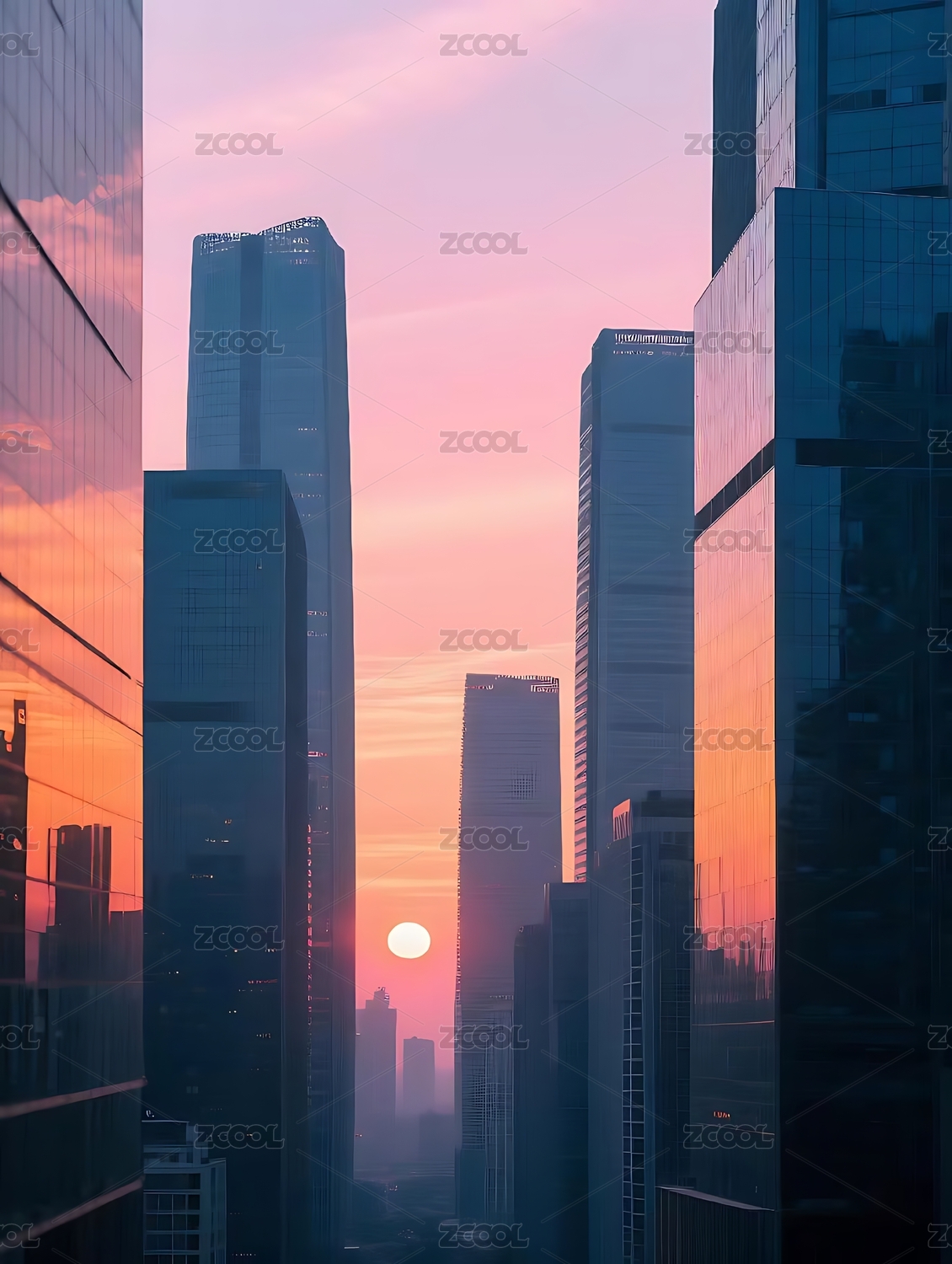 夕阳下的高楼城市景观