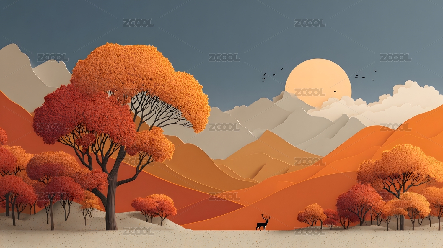 背景,温暖,艺术,立体,光影,树木,自然,树干,橙色,生态