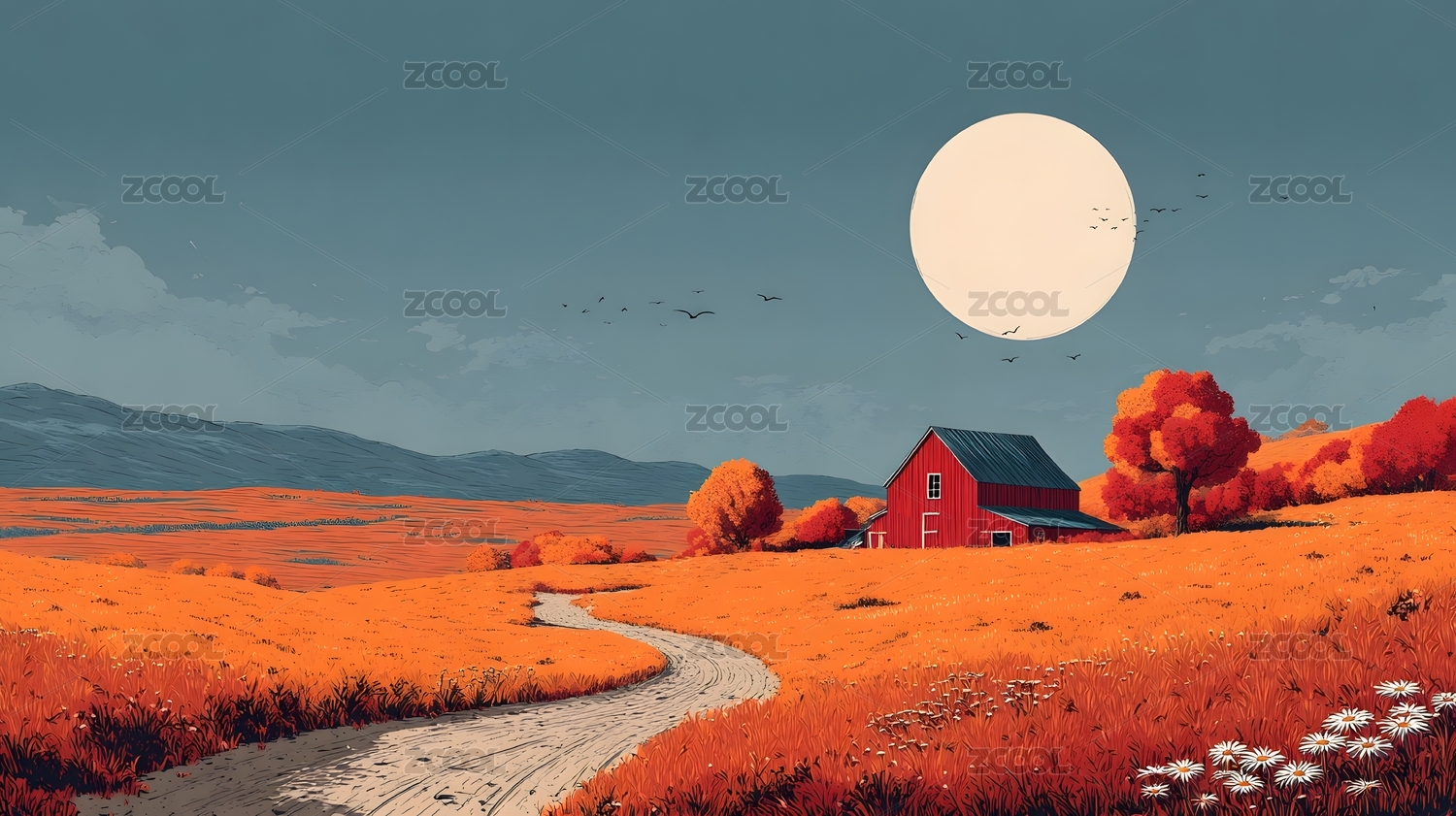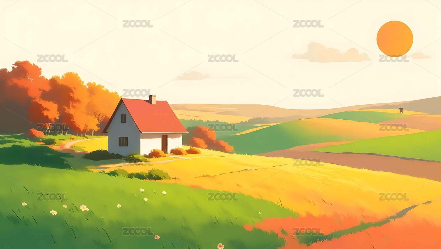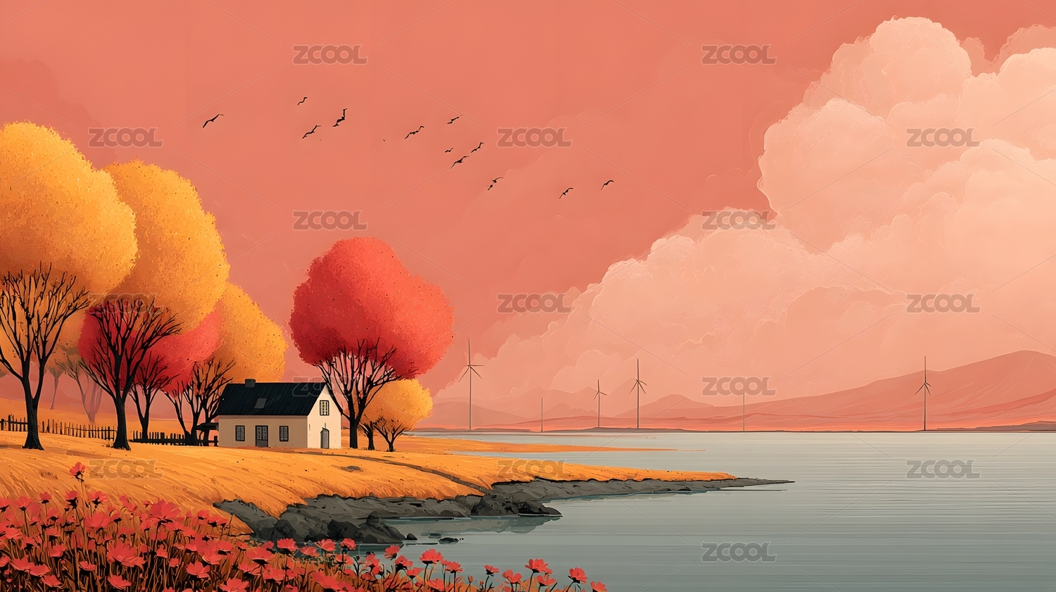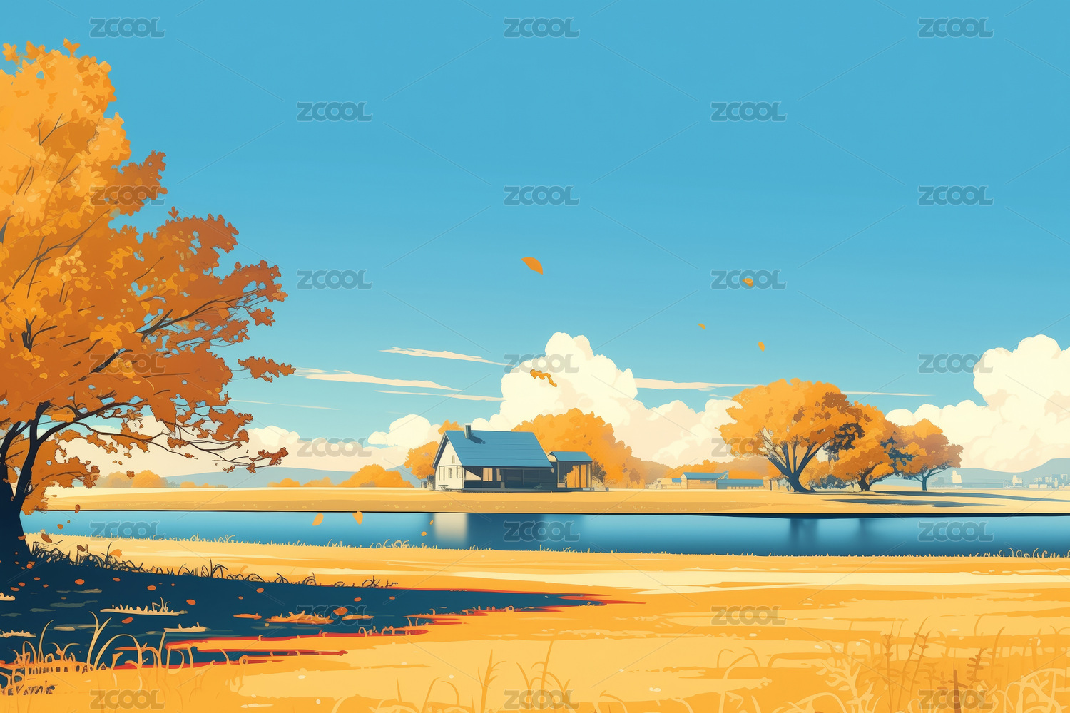 秋天秋季立秋秋分自然户外风景卡通漫画插画