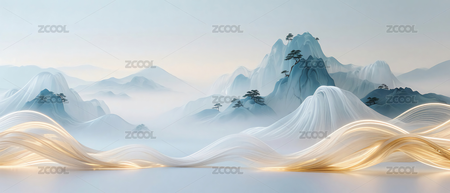 千里江山,风景,高山,流动,云雾,天空,写意,国潮,古风,背景