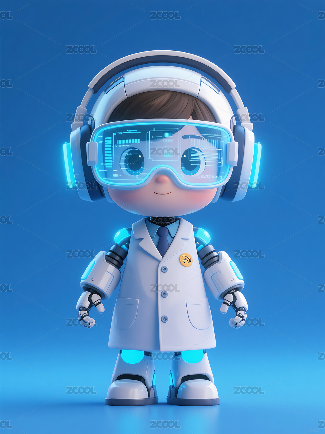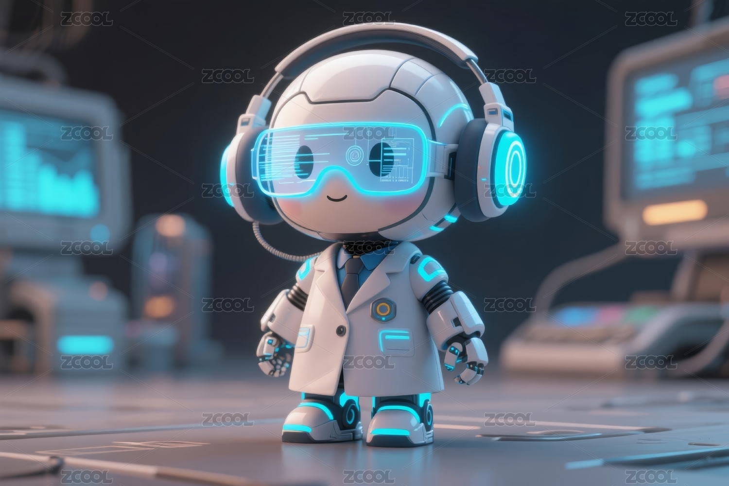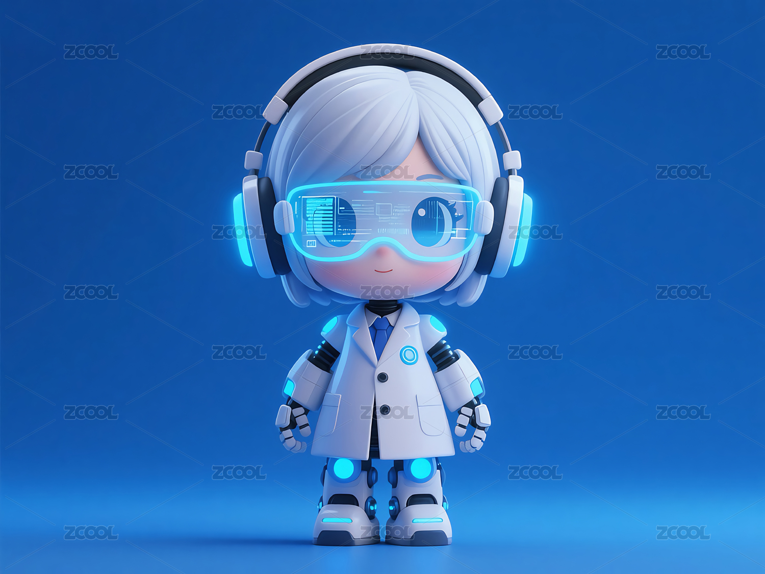 卡通,3D,机器人,特写,背景,人物,可爱风,人工智能,美女,VR眼镜