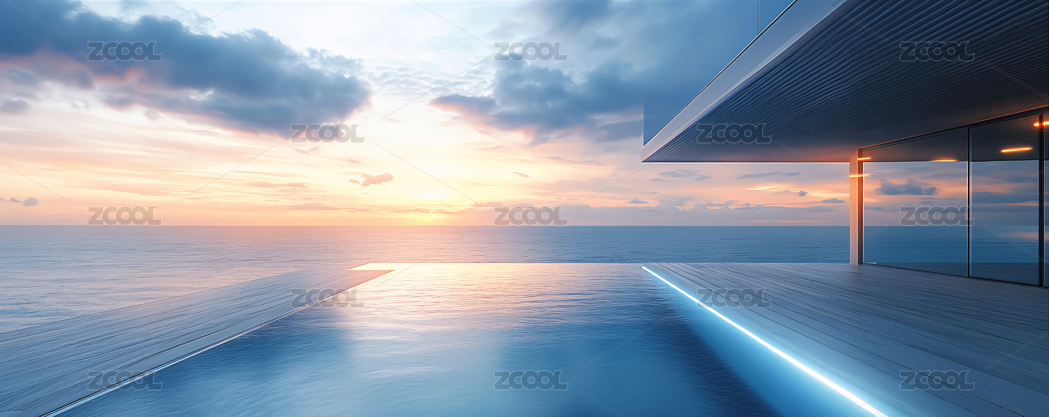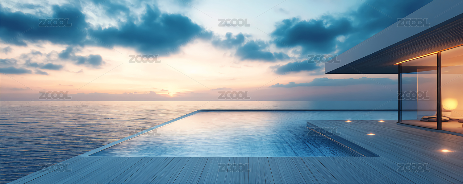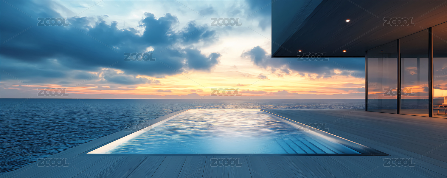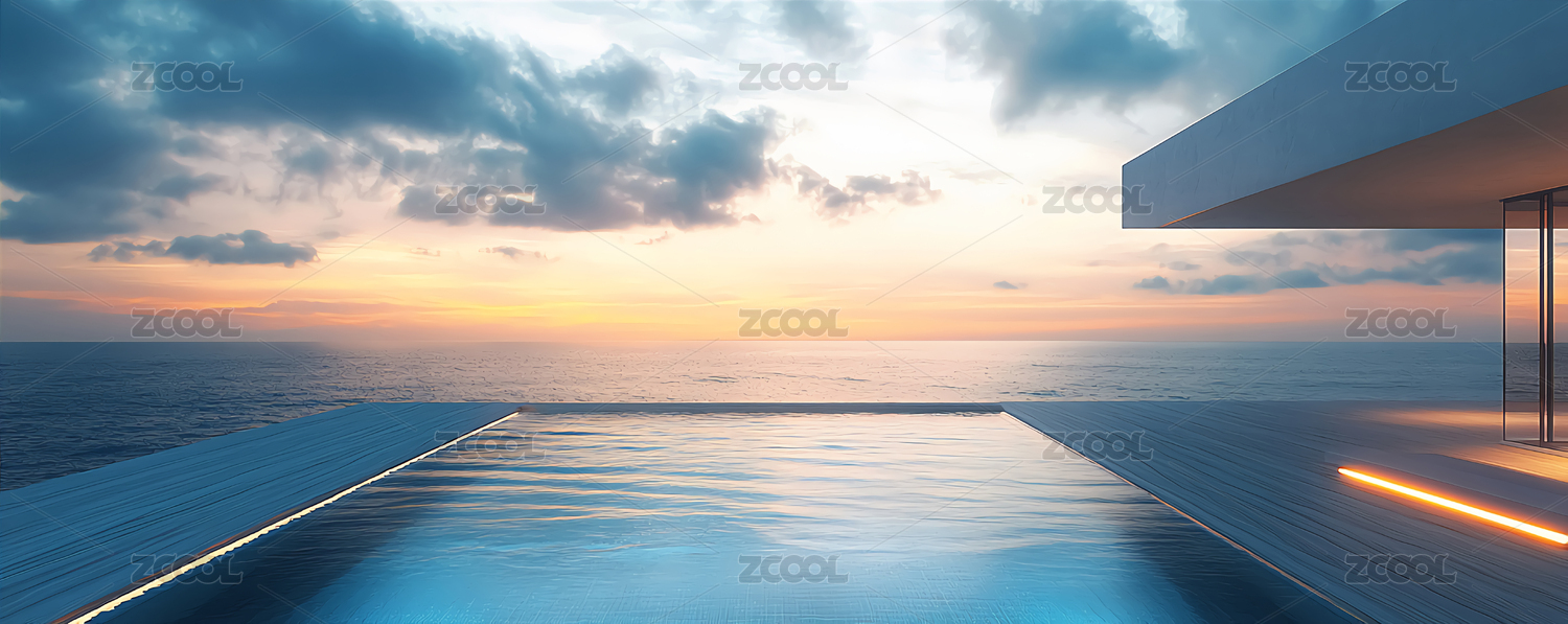 滨水,建筑,场景,3D,海边,度假,酒店,平台,展台,游泳池