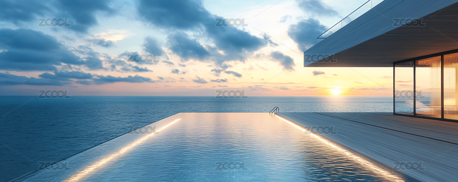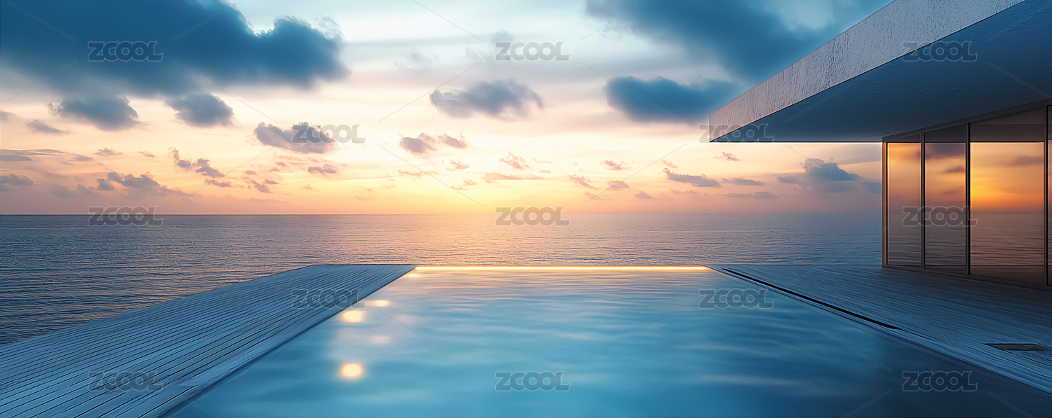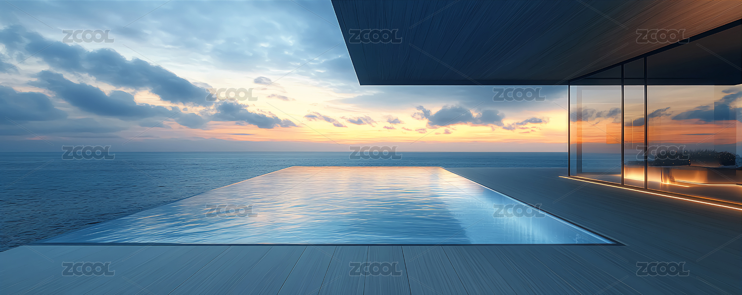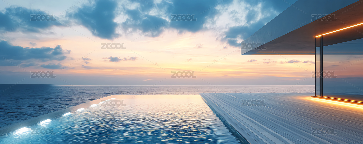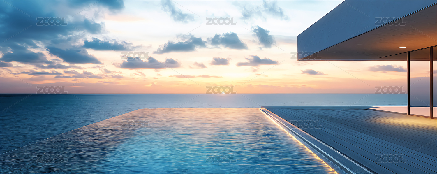 滨水,建筑,场景,3D,海边,度假,酒店,平台,展台,游泳池