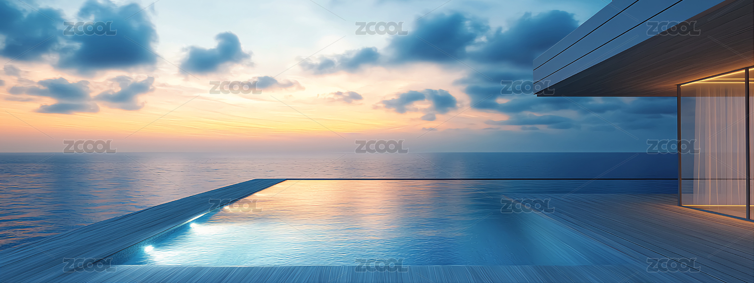 极简,蓝天,云彩,三维,背景,商务,现代,展台,游泳池,酒店