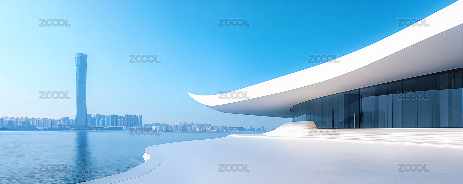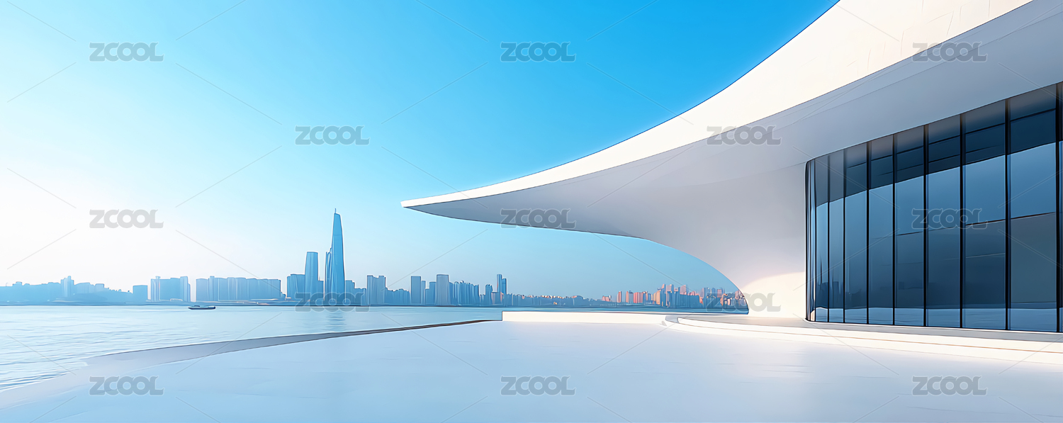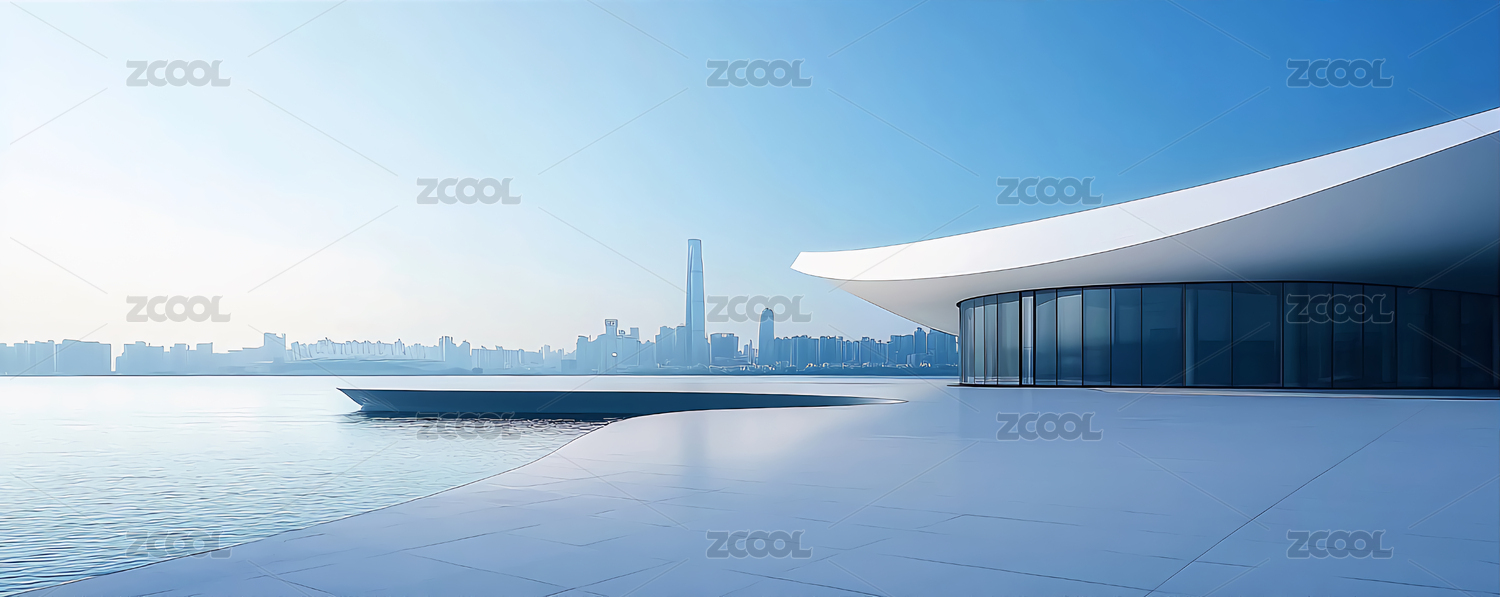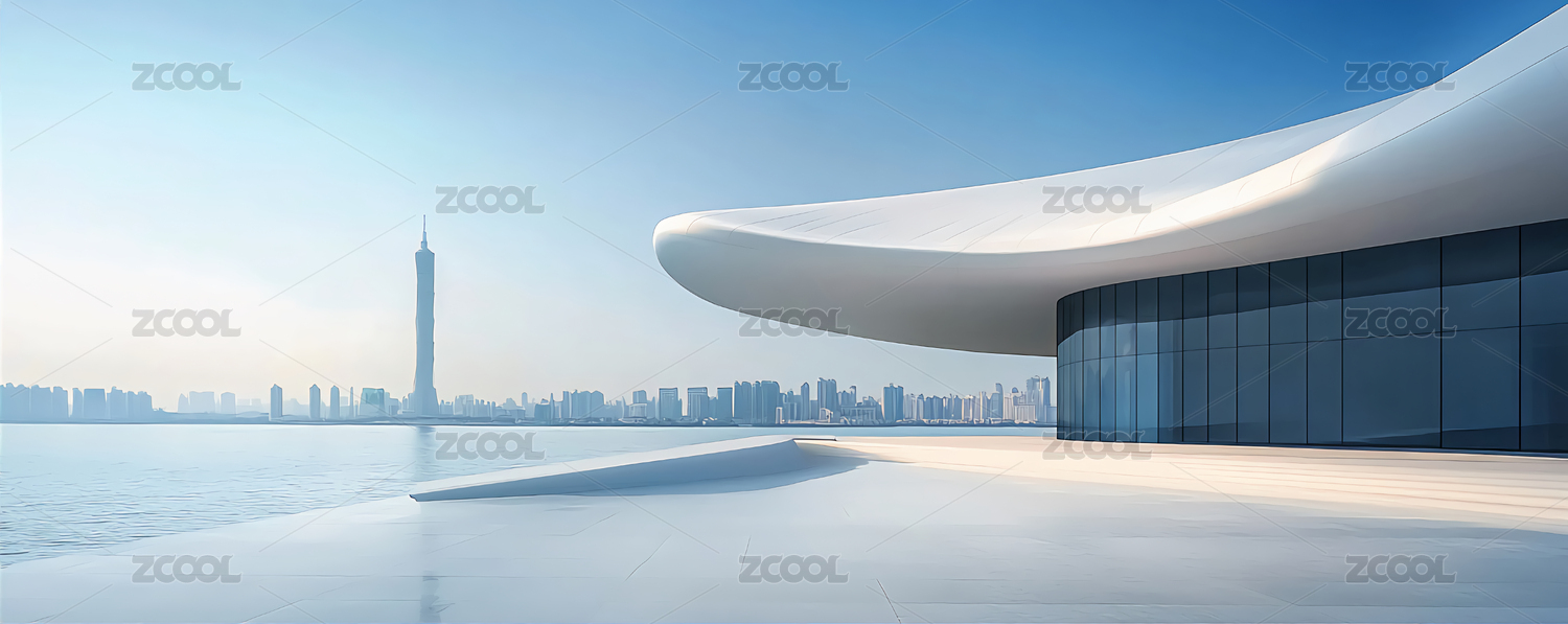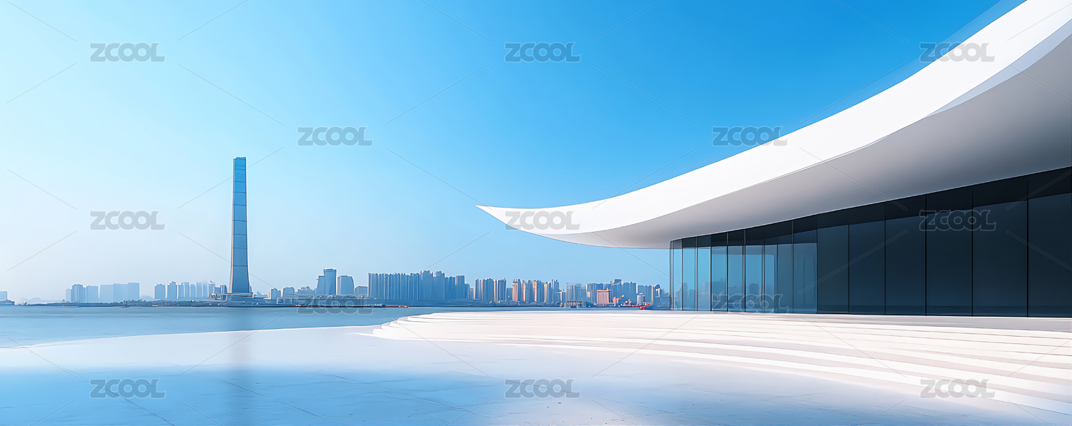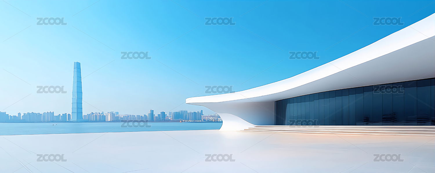 极简,现代,弧形,建筑,城市,天际线,天空,广场,平台,展示