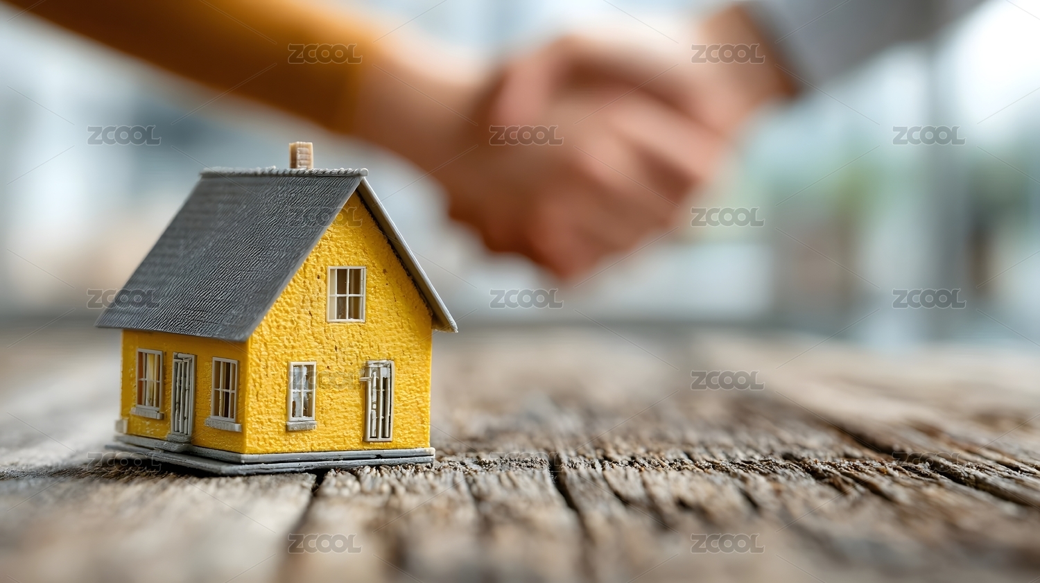 房屋代理销售成功的建筑方案概念 - 业务小姐与投资者买家完成交易,握手。