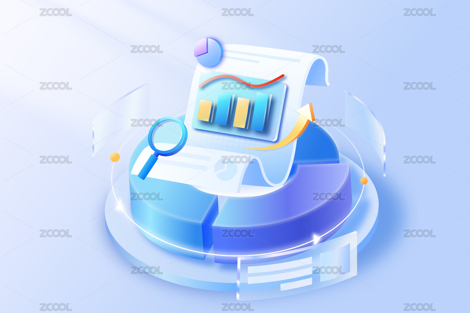 科技,图标,趋势图,柱状图,饼状图,走势图,商务,金融,放大镜,等距