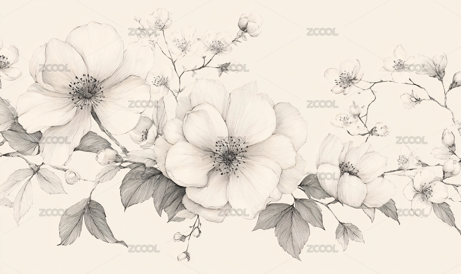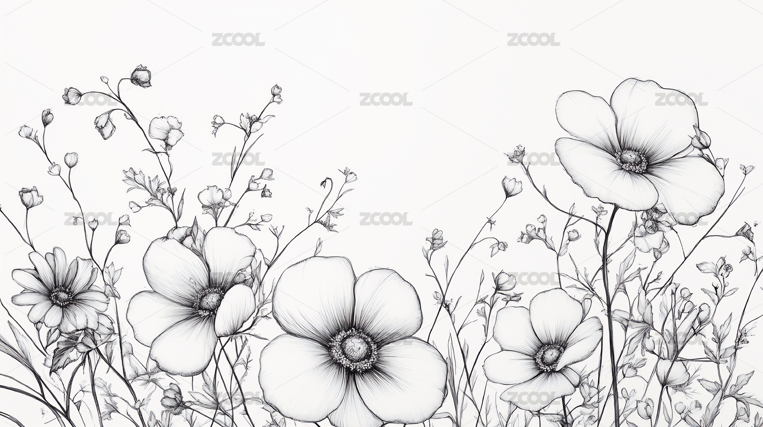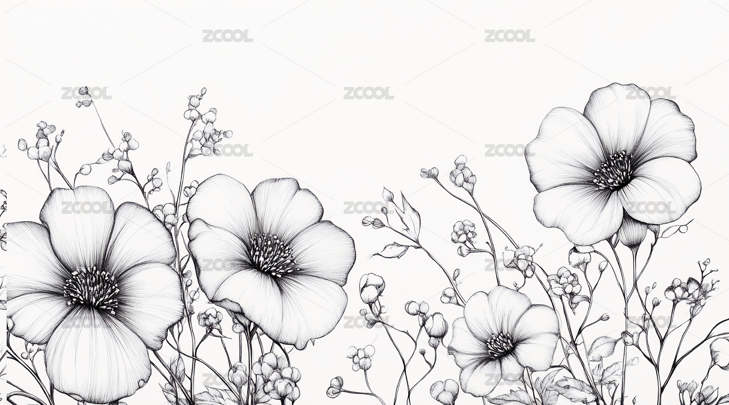 手绘黑白花卉图案