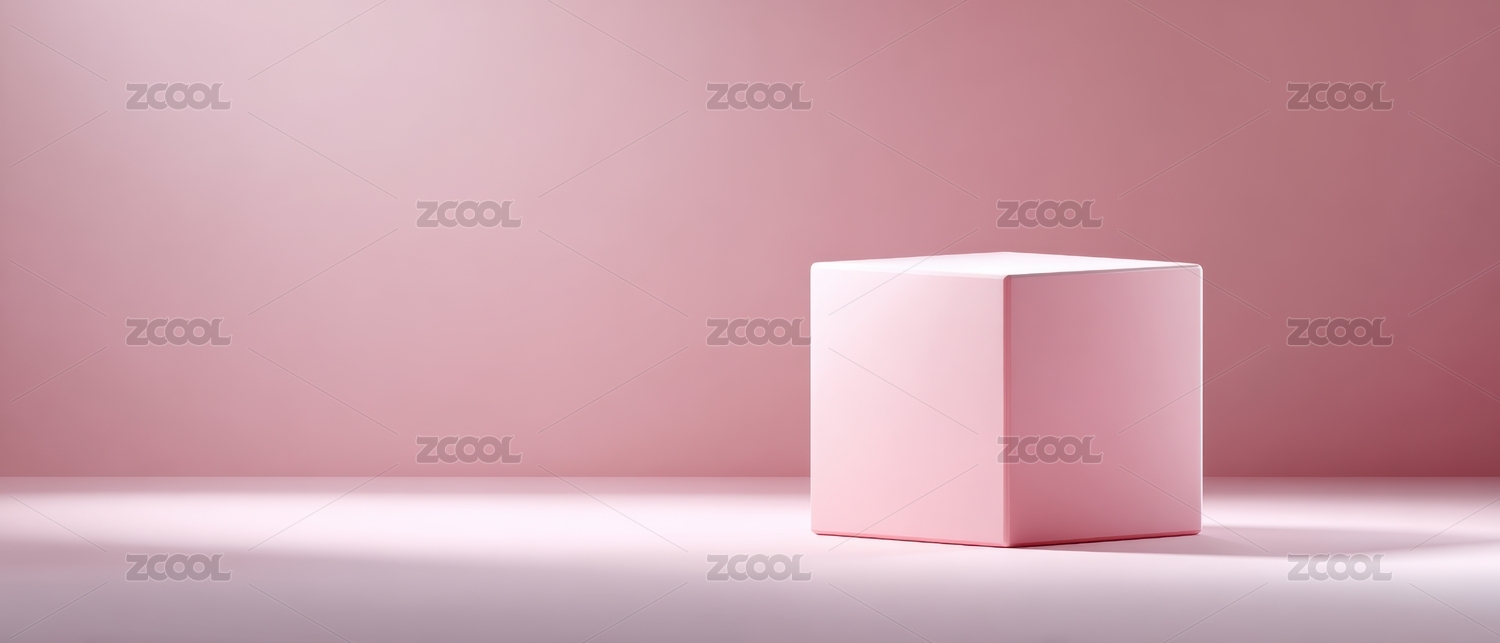 粉色立方体置于简约空间