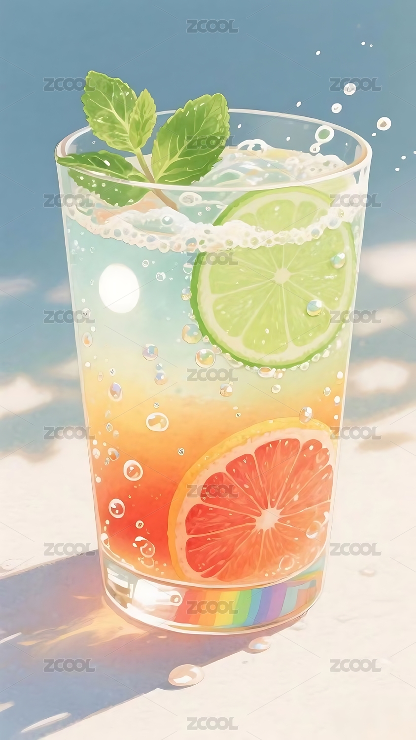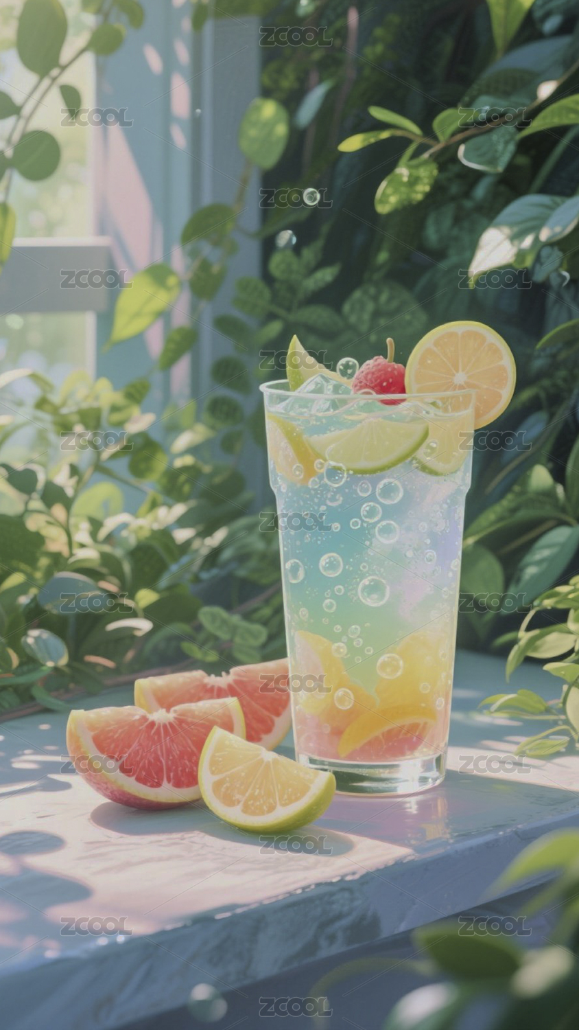夏日清爽水果气泡饮清新手机壁纸背景