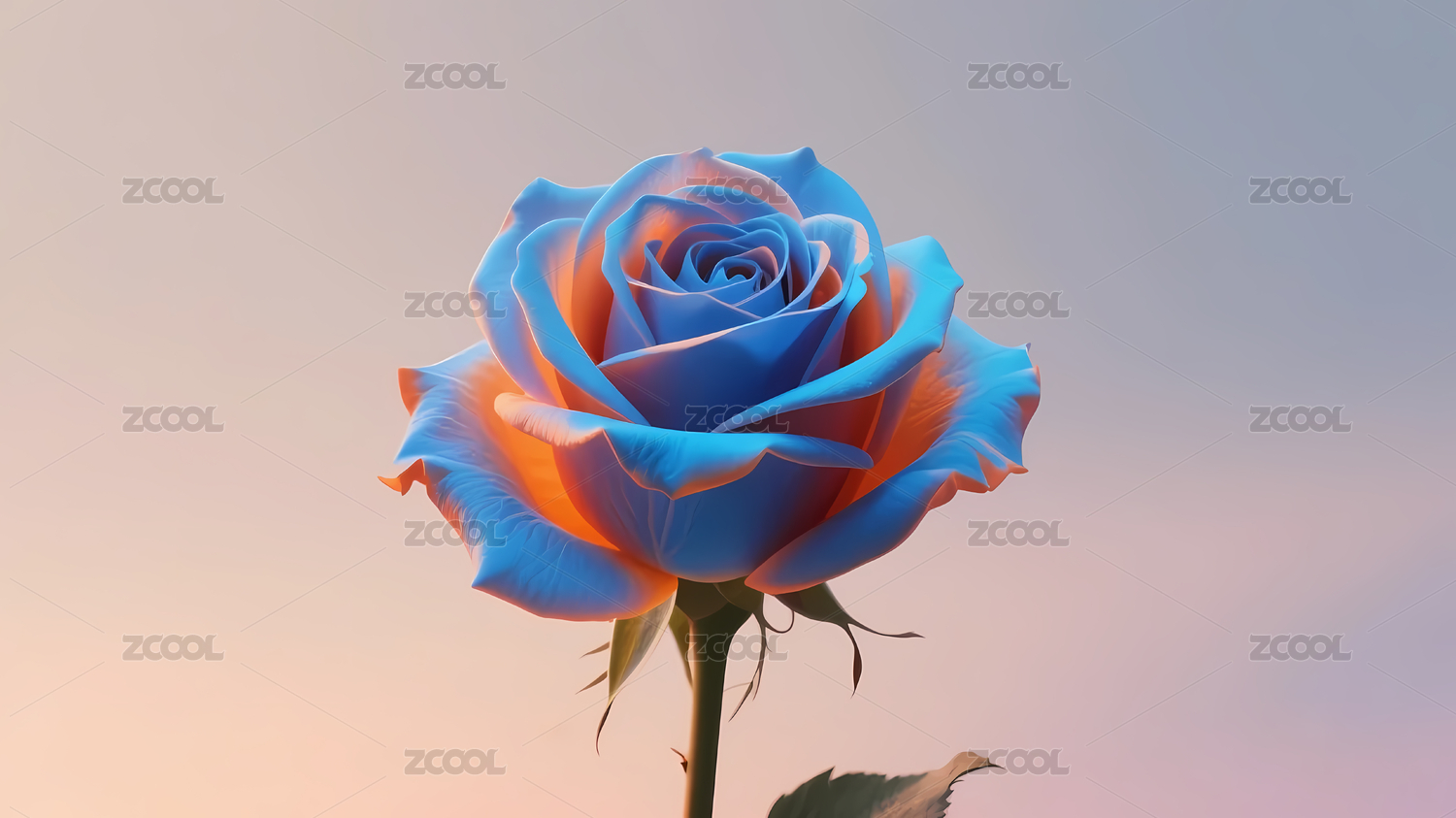 蓝紫玫瑰衬粉蓝渐变底