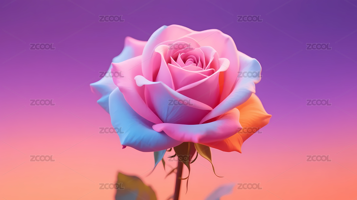 彩色玫瑰映衬紫橙渐变背景