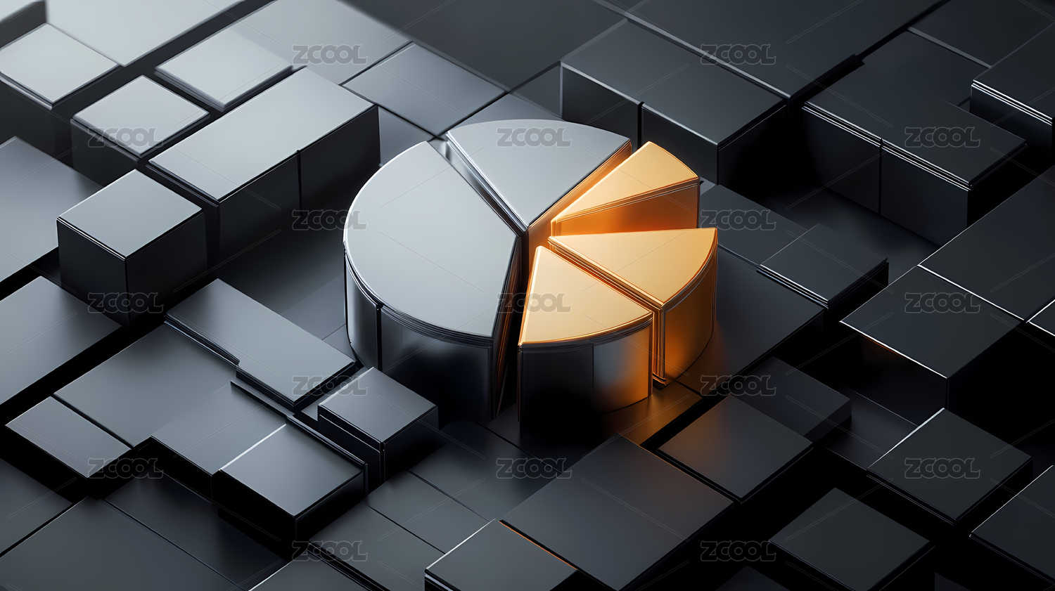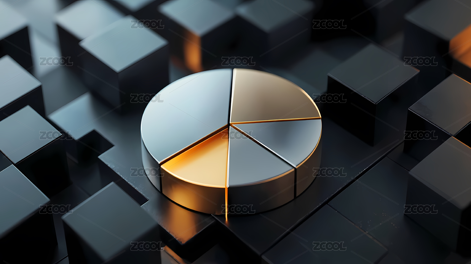 蓝色,背景,橙色,黑色,白色,圆环,饼图,立方体,球体,几何