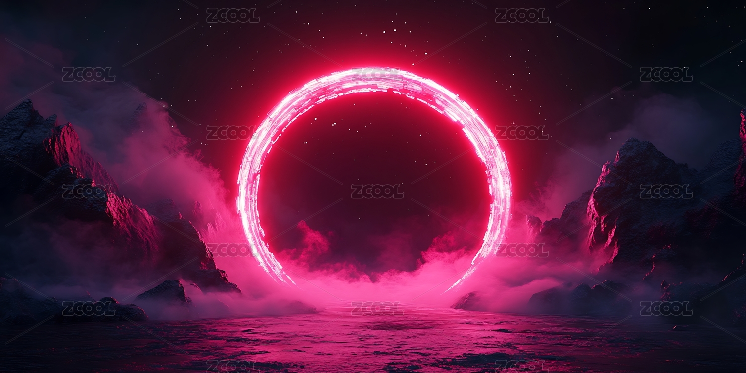 深蓝色,背景,神秘,光芒,科幻,紫色,岩石,夜空,环形,光圈