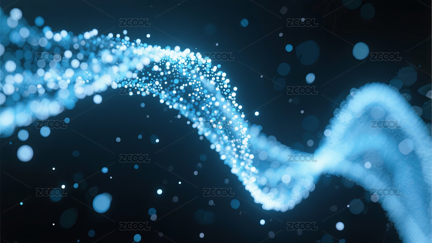蓝色发光能量粒子和线条的明亮波抽象背景