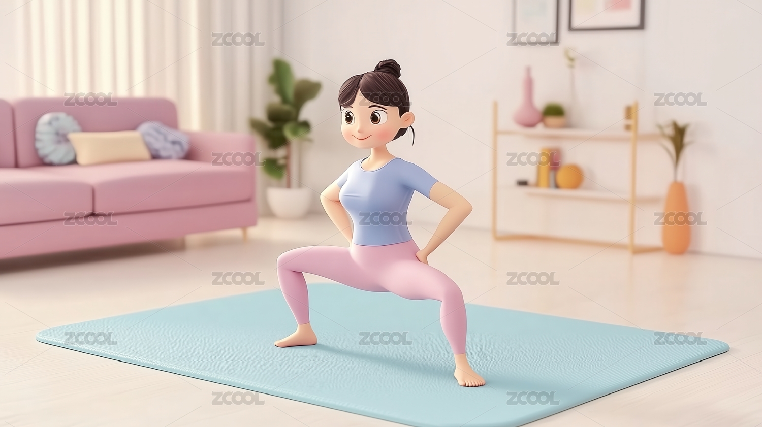 蓝色,卡通,平静,瑜伽,人物,练习,居家,健身,运动,健康