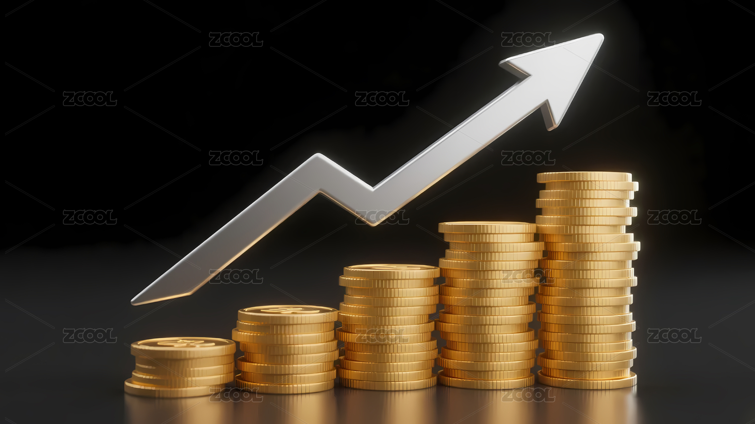 蓝色,背景,硬币,堆叠,箭头,增长,符号,金币,美元,经济