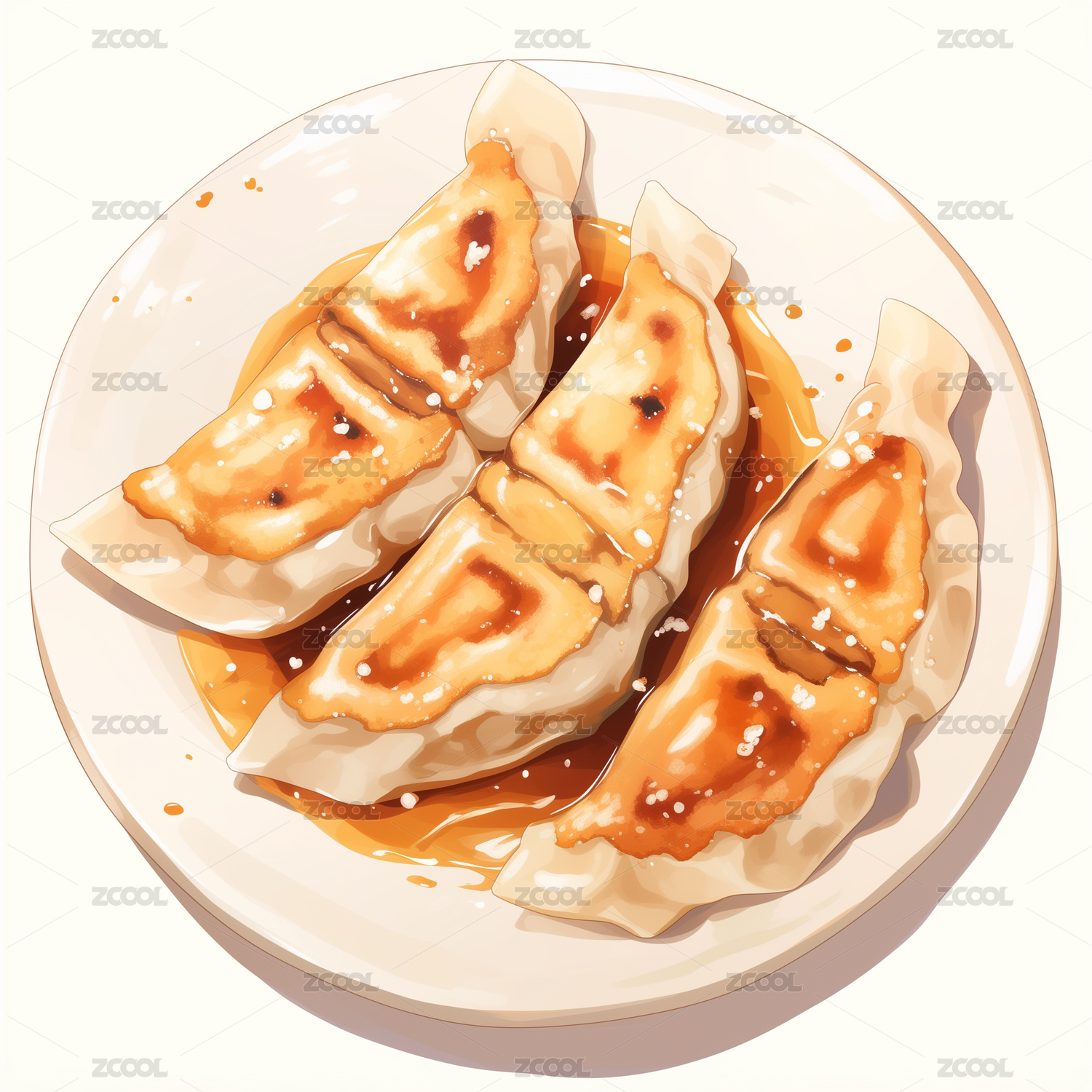 一盘美味煎饺插画