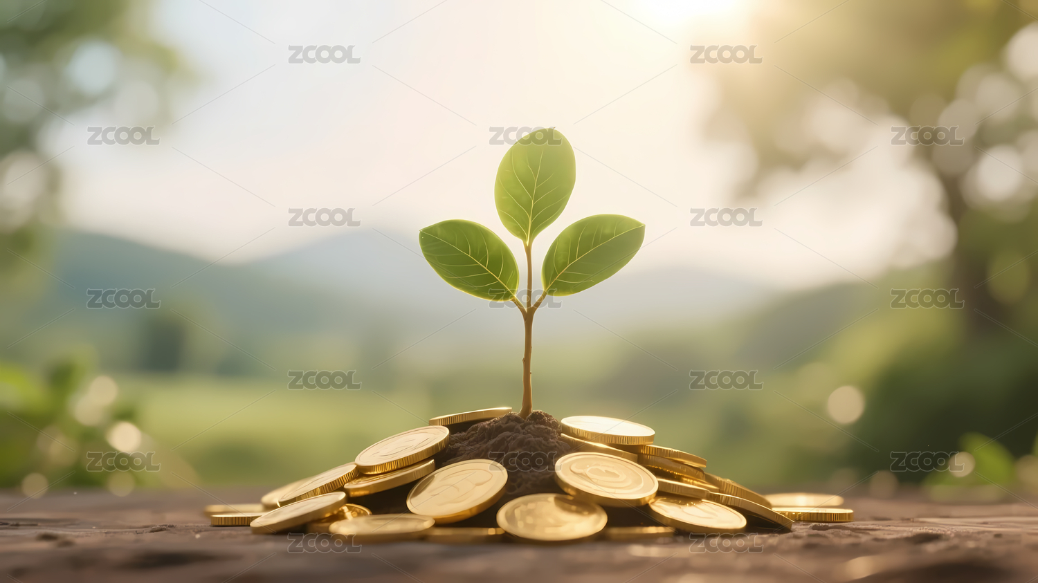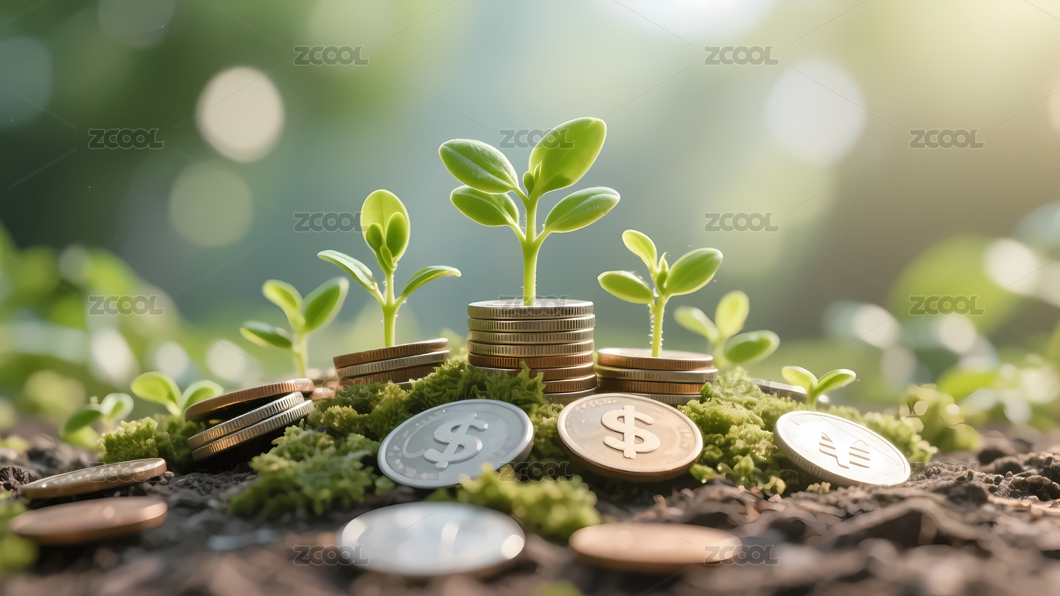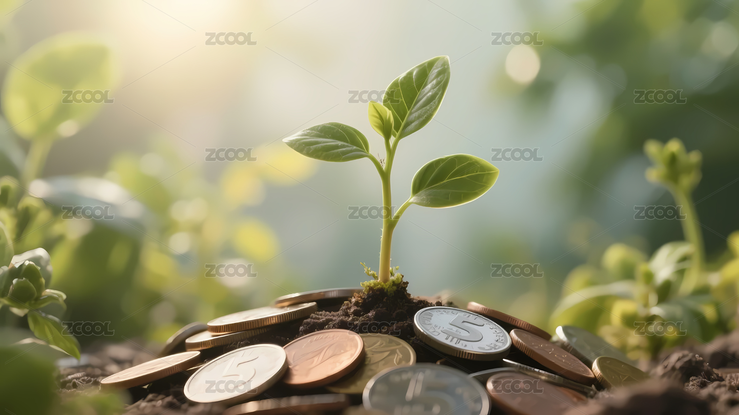 背景,幼苗,生长,硬币,堆,绿色,植物,阳光,财富,生机