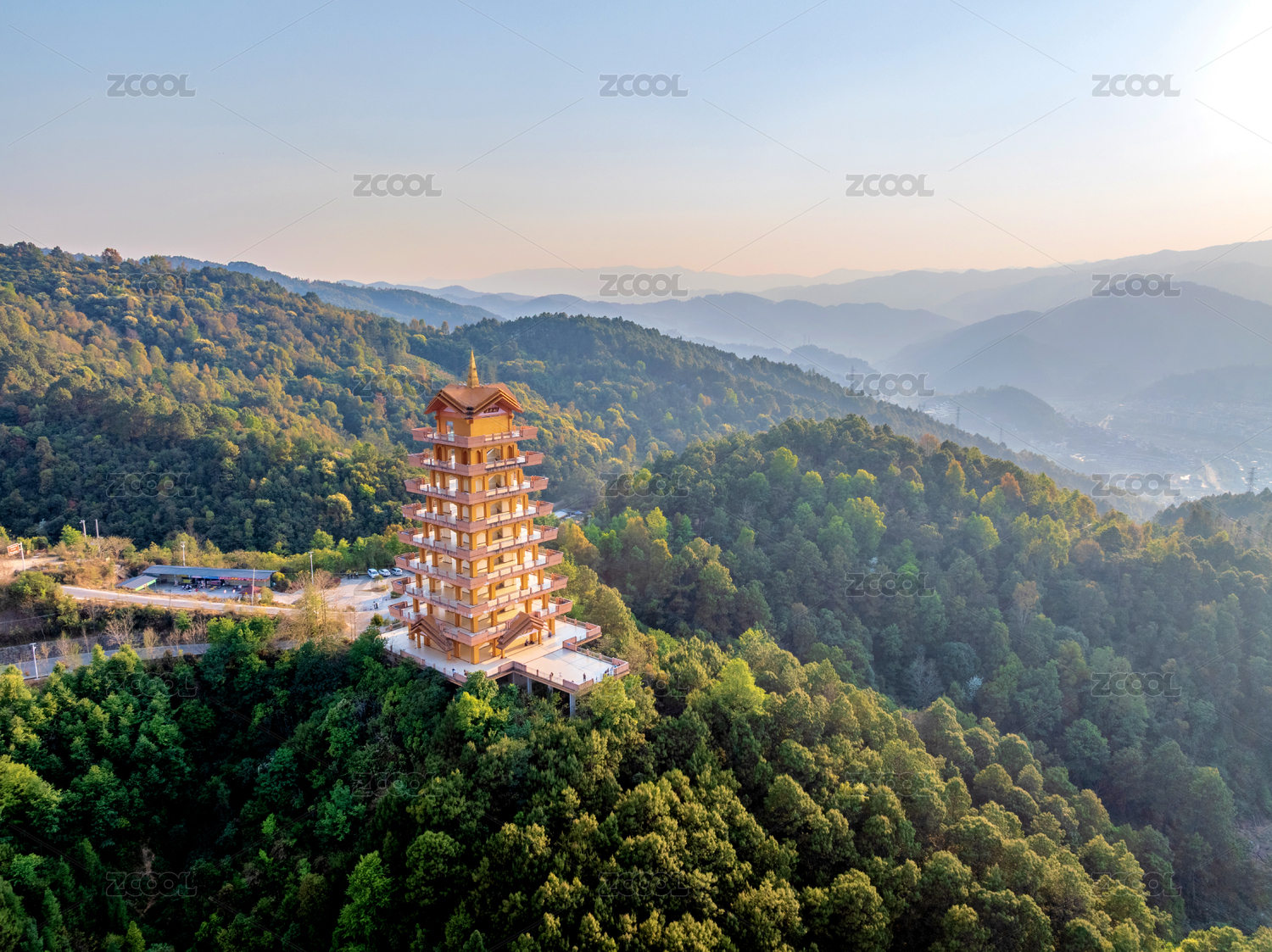 广西梧州市万秀区白云山景区四恩寺黄昏航拍