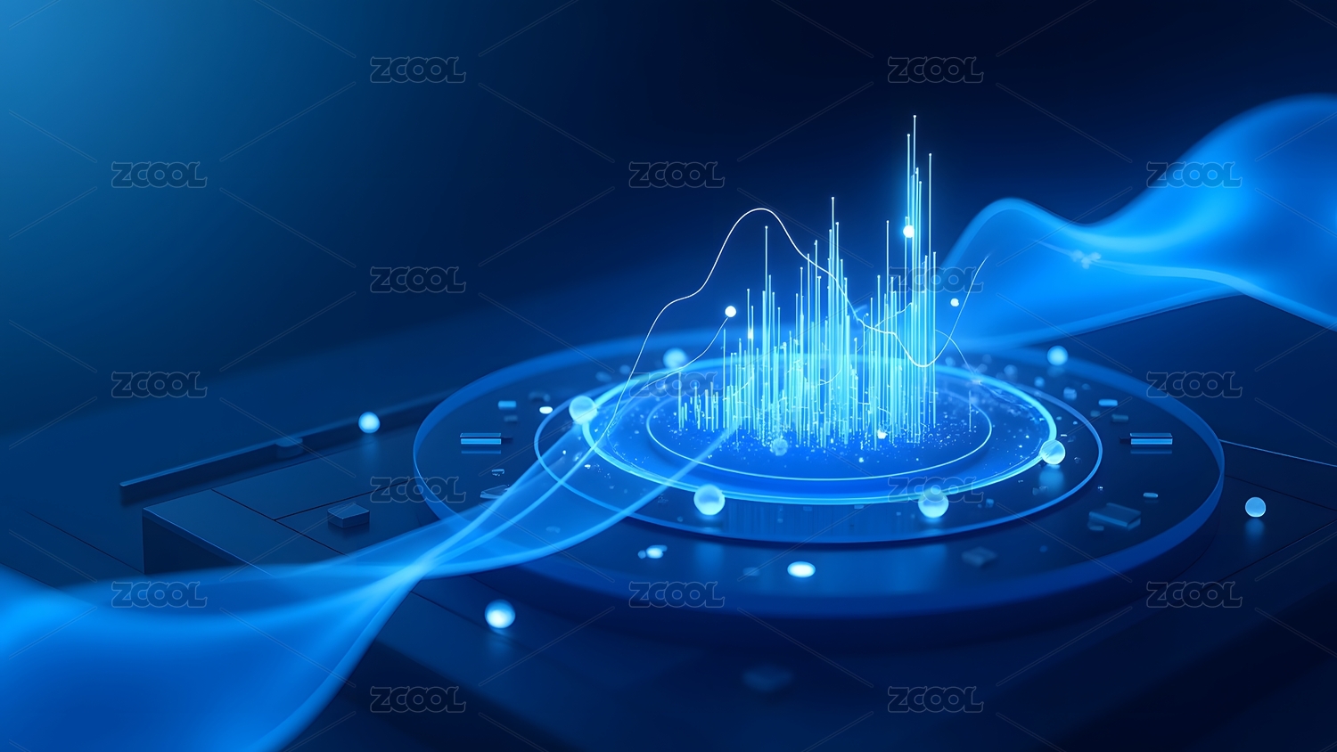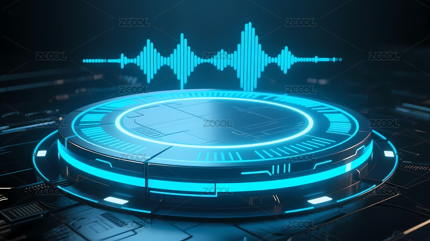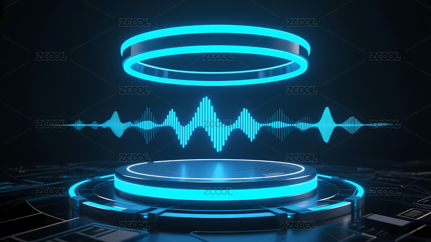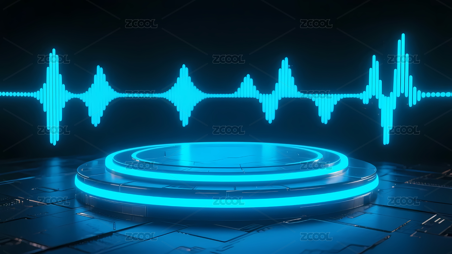 蓝色光环平台与动态音波图案
