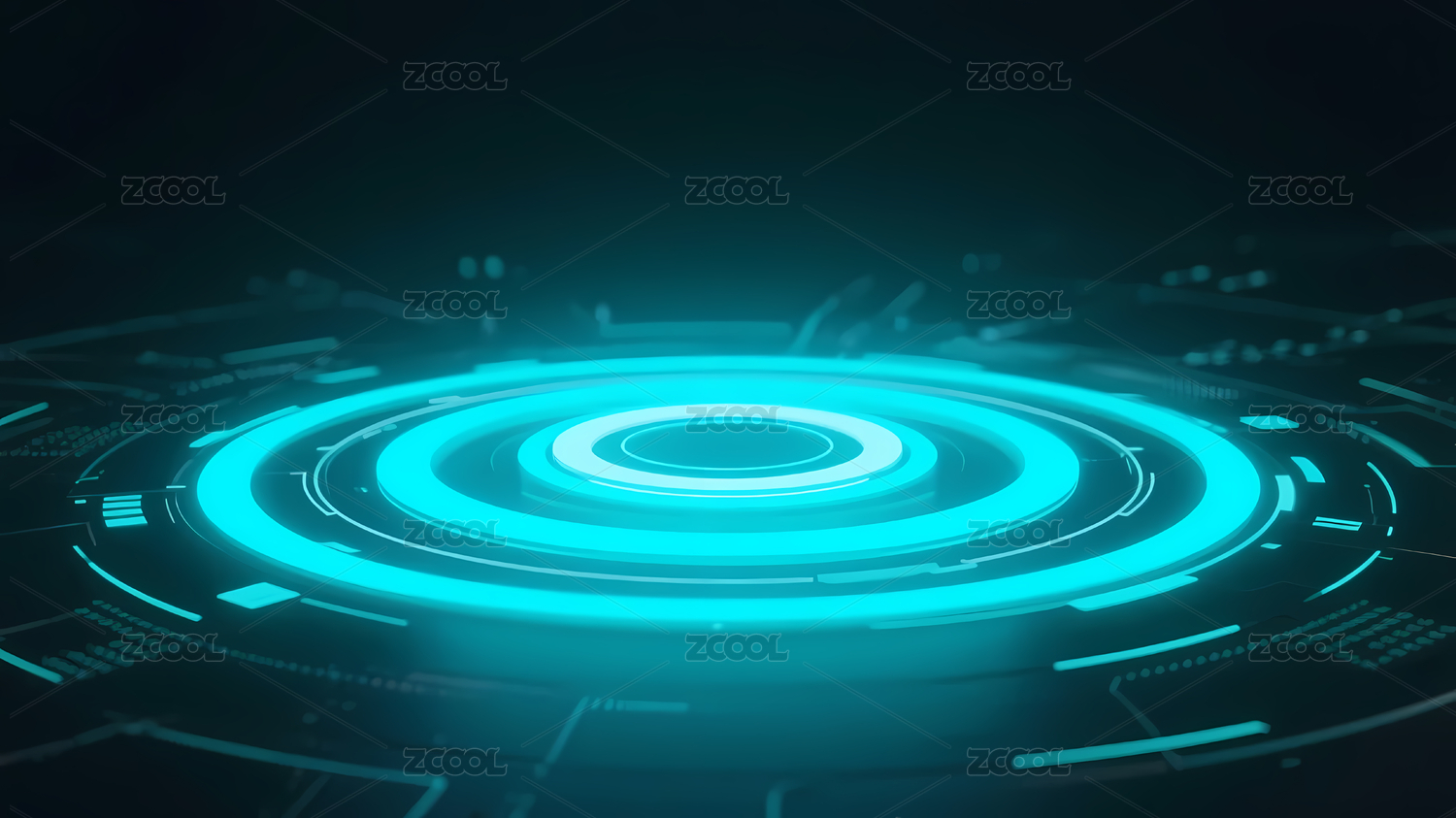 蓝色光环平台与深色网格背景