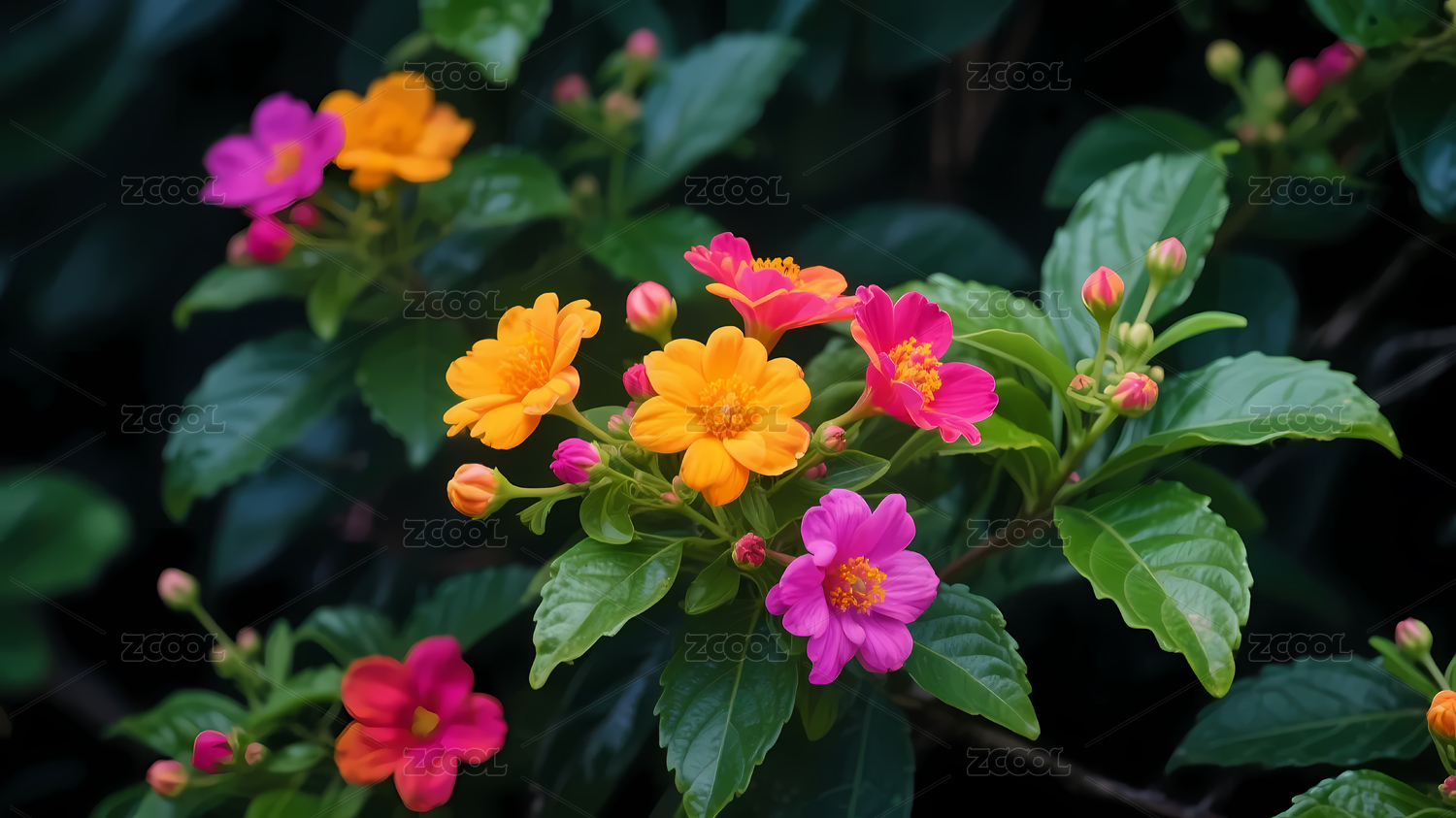 花朵,黄色,叶子,绿色,生机,自然,粉色,红色,小花,鲜艳